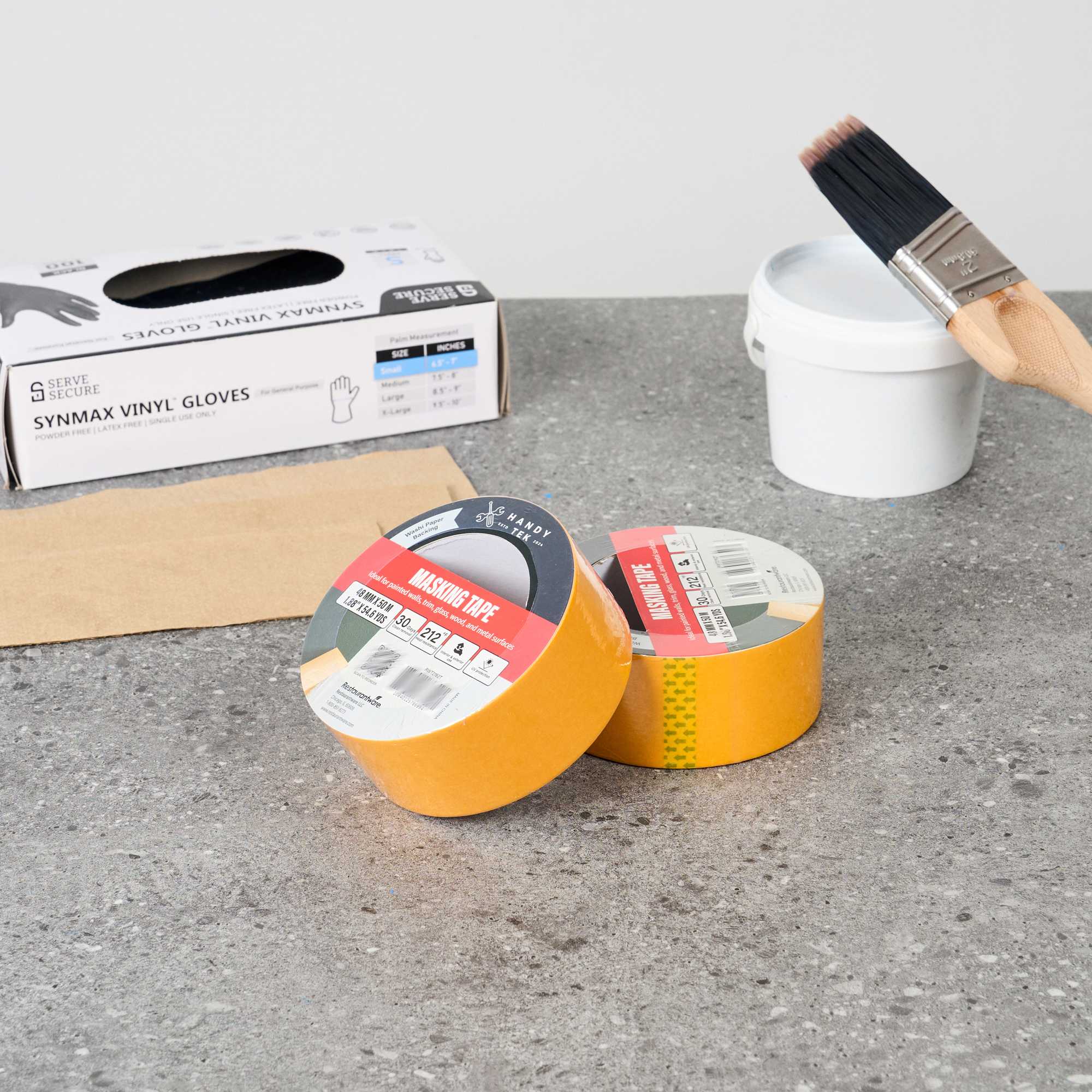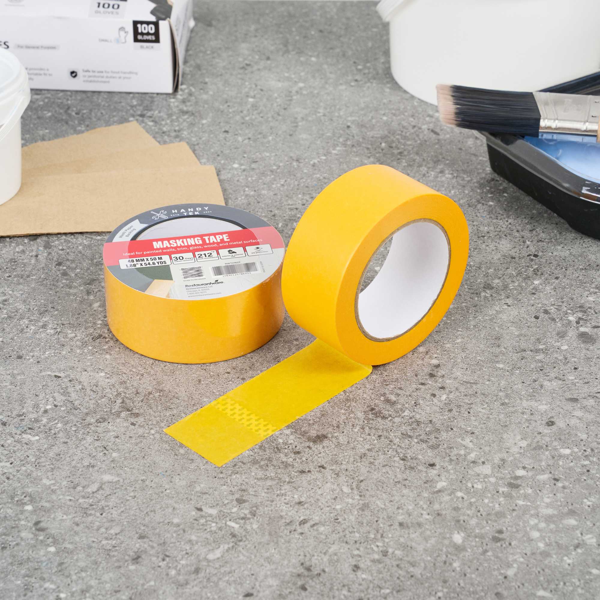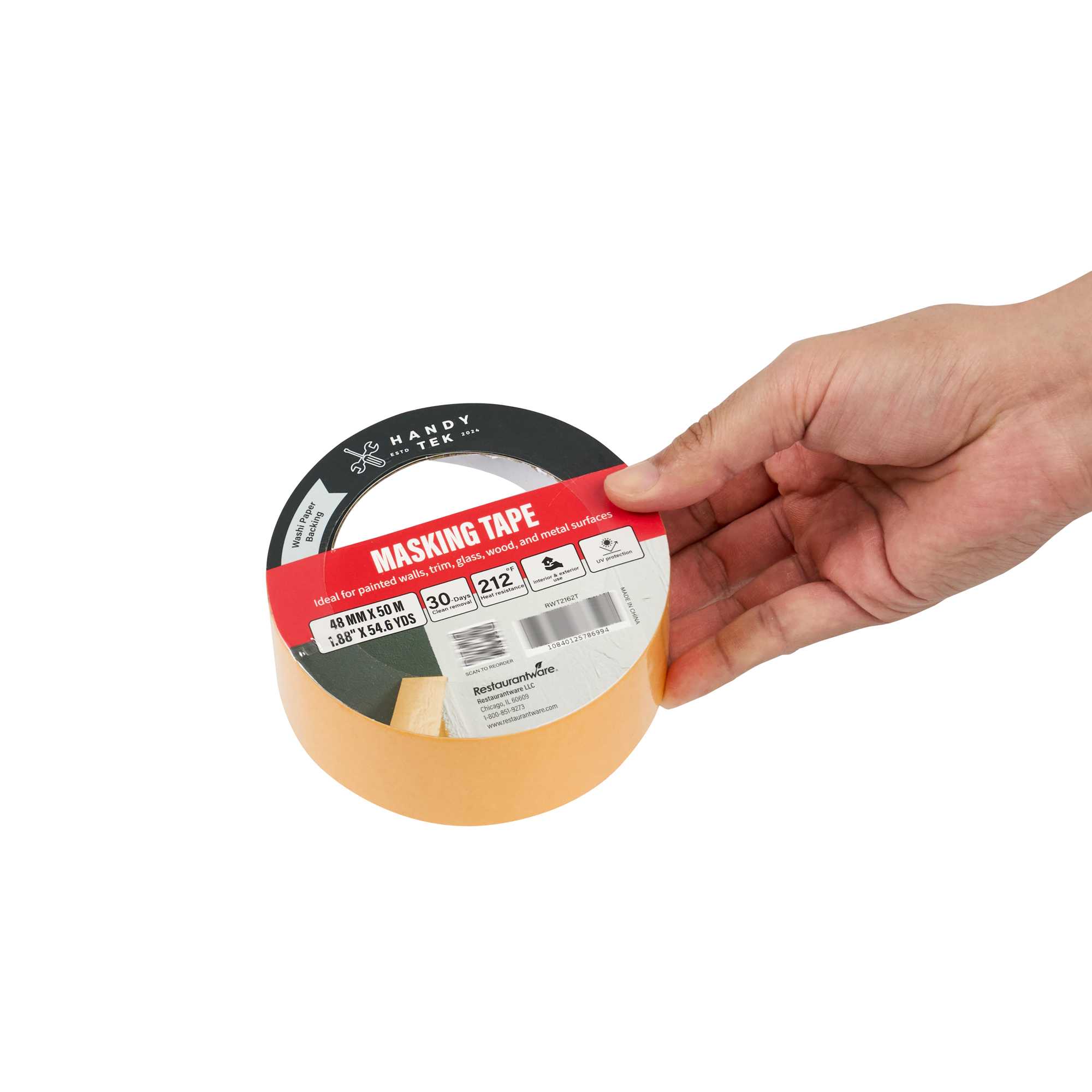 Tackle detailed painting projects with our Handy Tek Orange Rice Paper Masking Tape Roll. Crafted from durable washi paper, this masking tape creates crisp paint lines and is easy to handle for precision tasks. This painter’s tape removes cleanly for up to 30 days, leaving no residue behind and reducing cleanup time. Designed for demanding jobs, this adhesive tape resists heat and UV exposure to perform indoors or outdoors. With strong tack, this labeling tape adheres well to painted walls, trim, glass, wood, and metal for versatile application. Measuring 1.89 inches in width, this masking tape roll features a total length of 54 yards for long-lasting use. Sold in a 1 count box.