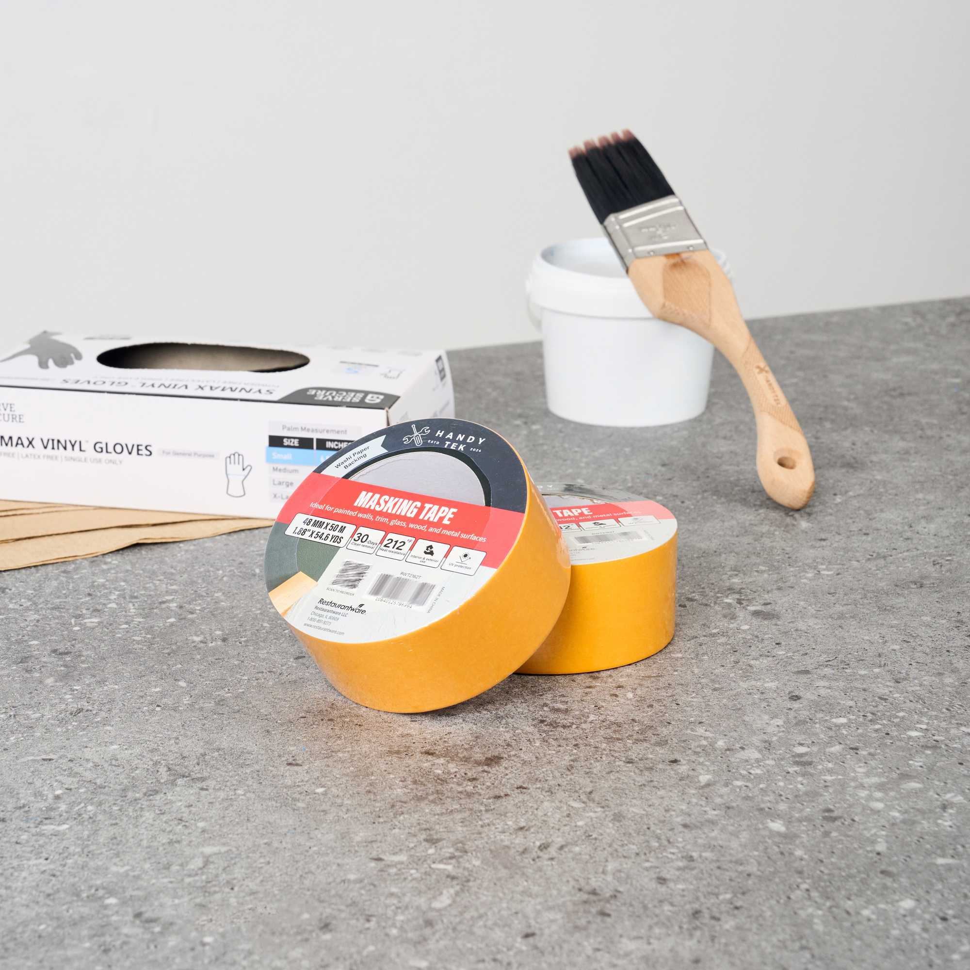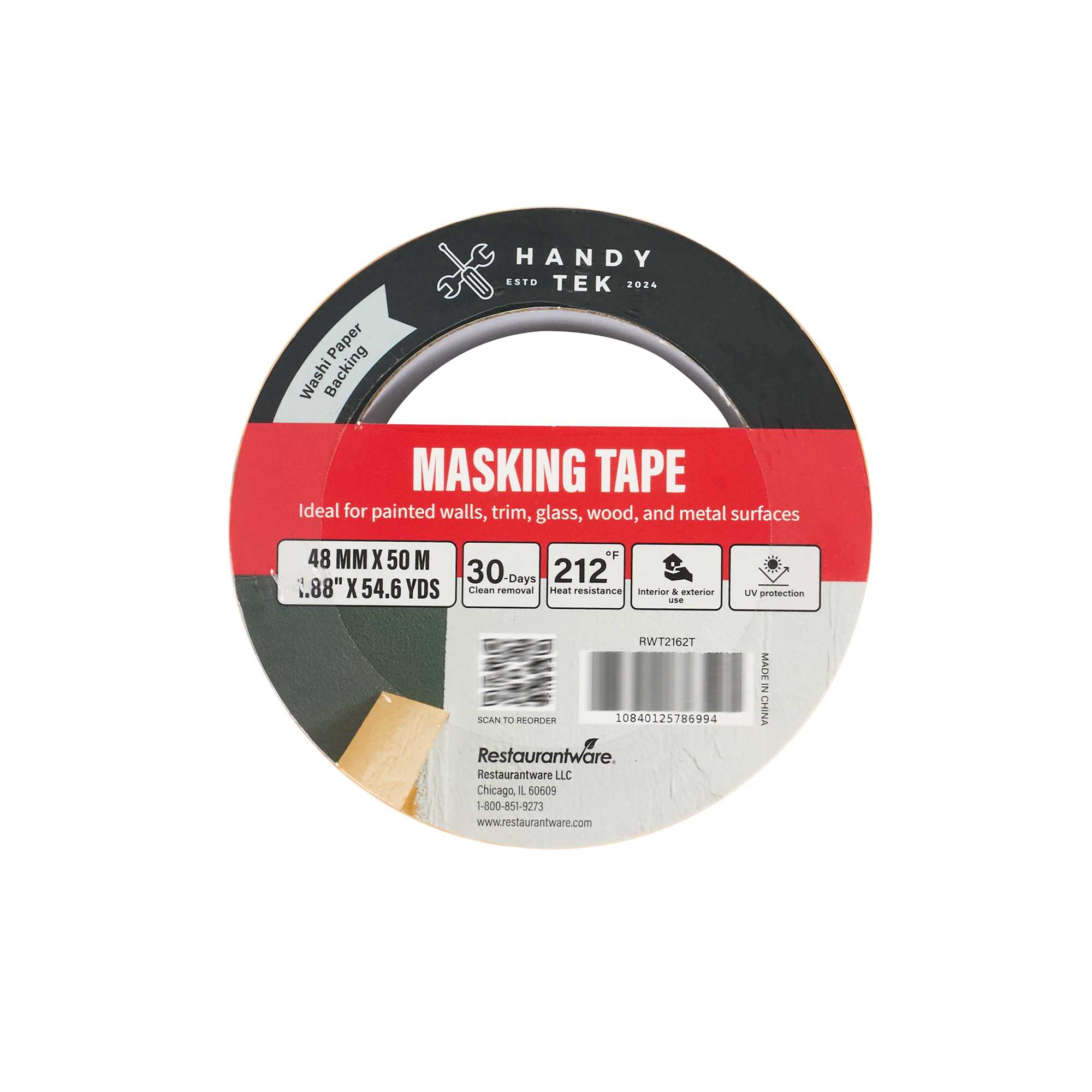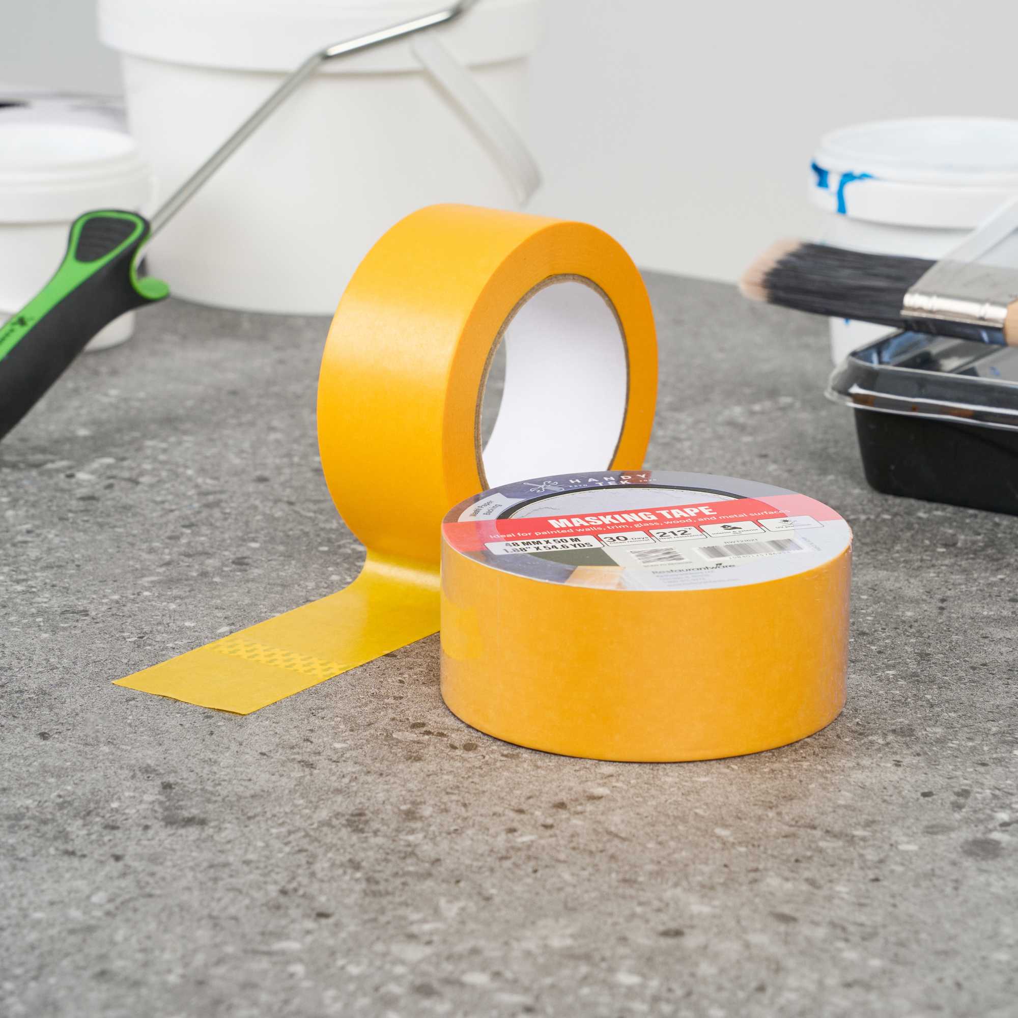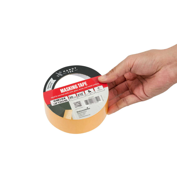 Tackle detailed painting projects with our Handy Tek Orange Rice Paper Masking Tape Roll. Crafted from durable washi paper, this masking tape creates crisp paint lines and is easy to handle for precision tasks. This painter’s tape removes cleanly for up to 30 days, leaving no residue behind and reducing cleanup time. Designed for demanding jobs, this adhesive tape resists heat and UV exposure to perform indoors or outdoors. With strong tack, this labeling tape adheres well to painted walls, trim, glass, wood, and metal for versatile application. Measuring 1.89 inches in width, this masking tape roll features a total length of 54 yards for long-lasting use. Sold in a 12 count box.