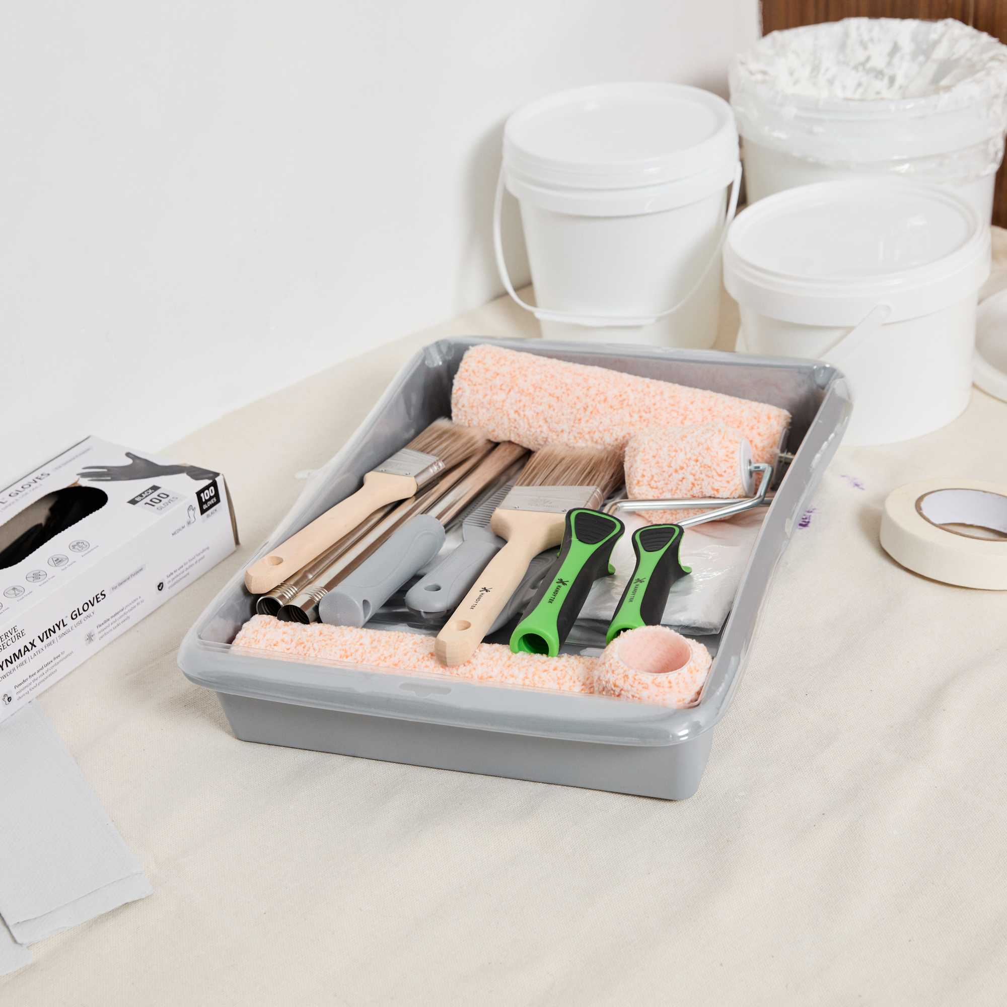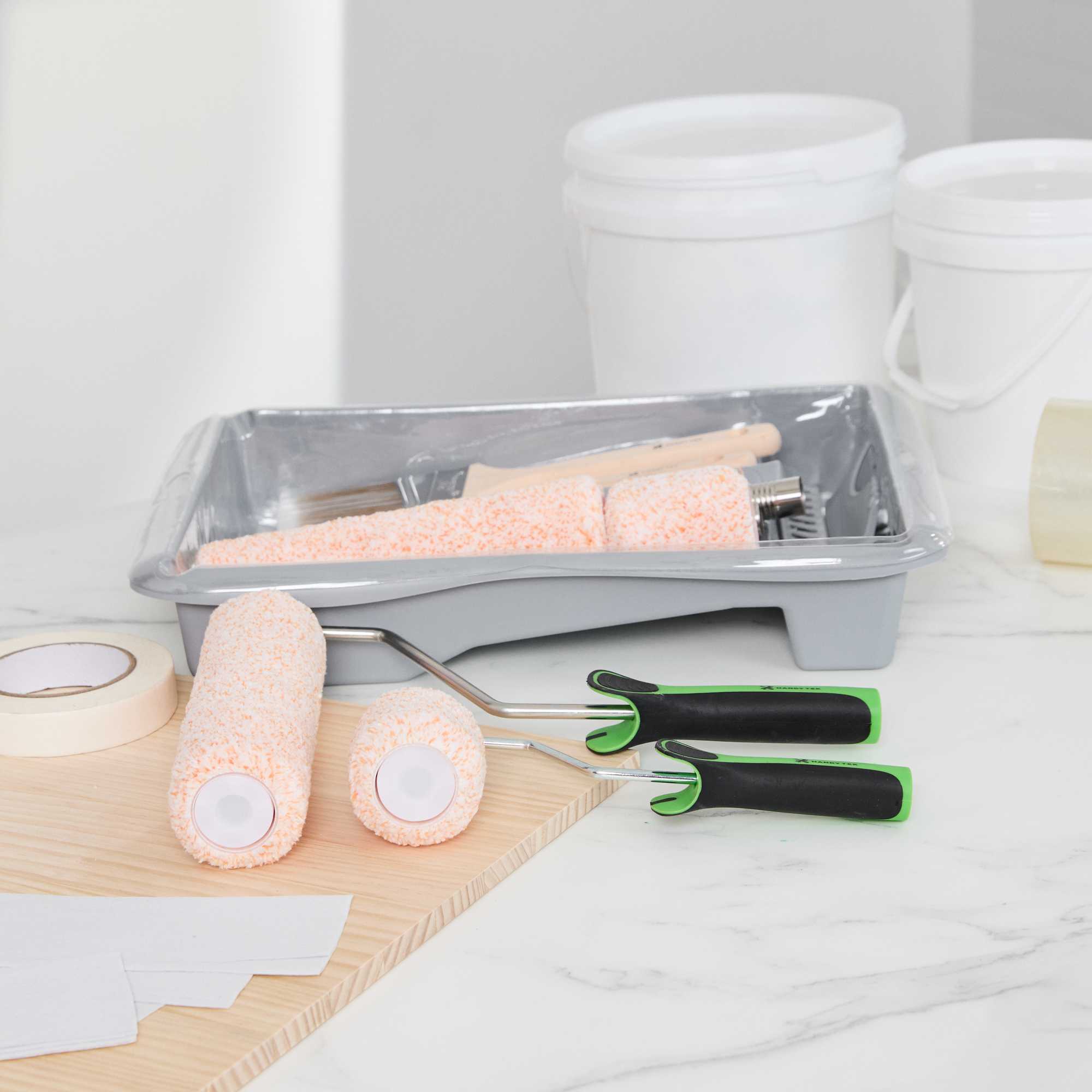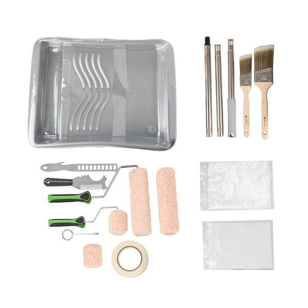 - Multiple rollers and brush sizes deliver smooth results on large areas and corners