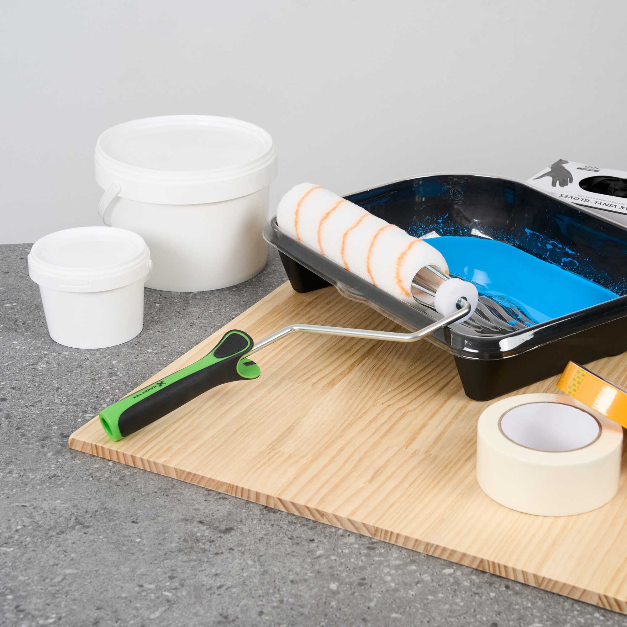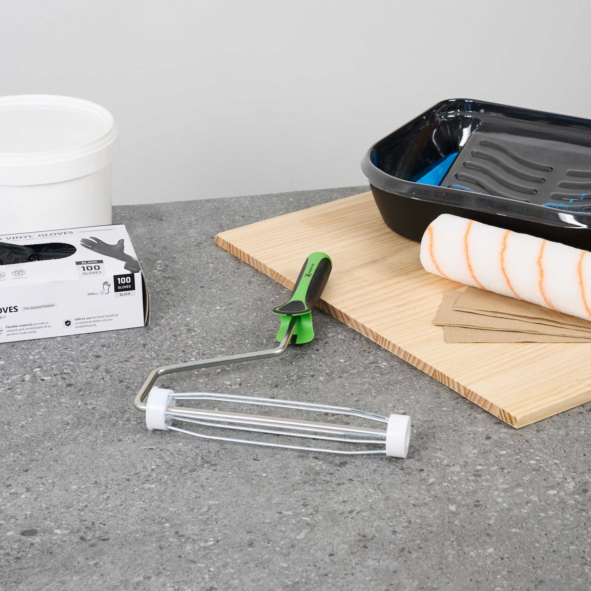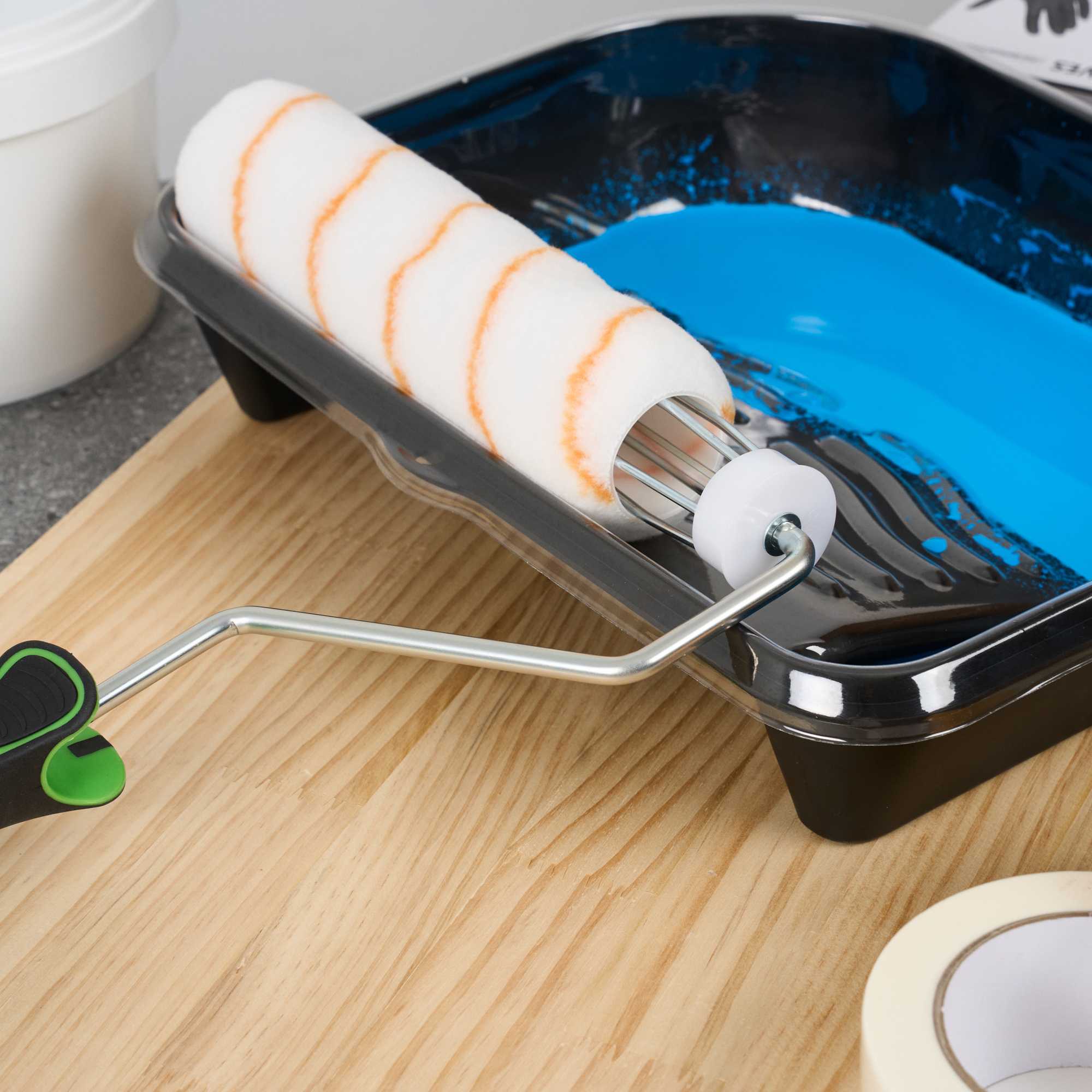Upgrade your painting with our Handy Tek Roller Frame, designed for both expert and DIY projects. Built for durability, this heavy-duty paint handle frame ensures long-lasting performance. The 5-wire roller cage of this roller holder securely holds roller covers in place, preventing slipping and ensuring a smooth, even application. For effortless painting across walls, ceilings, and hard-to-reach areas, this frame is compatible with 9-inch roller covers featuring a 1.5-inch core diameter for smooth paint application. The roller frame includes a threaded end to securely attach to our compatible extension poles for extended reach. Featuring a soft grip handle, this painting roller frame provides a comfortable, secure grip, reducing hand fatigue during extended use. Measuring 12.99 inches in length by 9.84 inches in width by 1.38 inches in height, this roller frame is ideal for a variety of painting tasks. Sold in a 1 count box. Roller covers and extension poles are sold seperately.