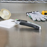 - Retractable design slides the blade safely into the handle and reduces accidental cuts