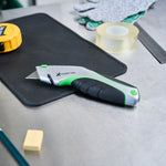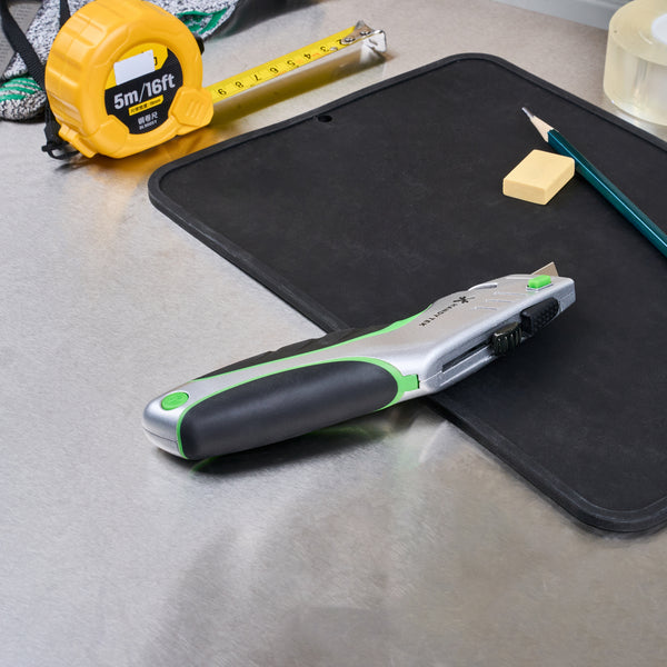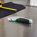 - Retractable design slides the blade safely into the handle and reduces accidental cuts