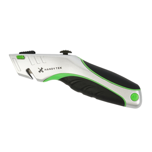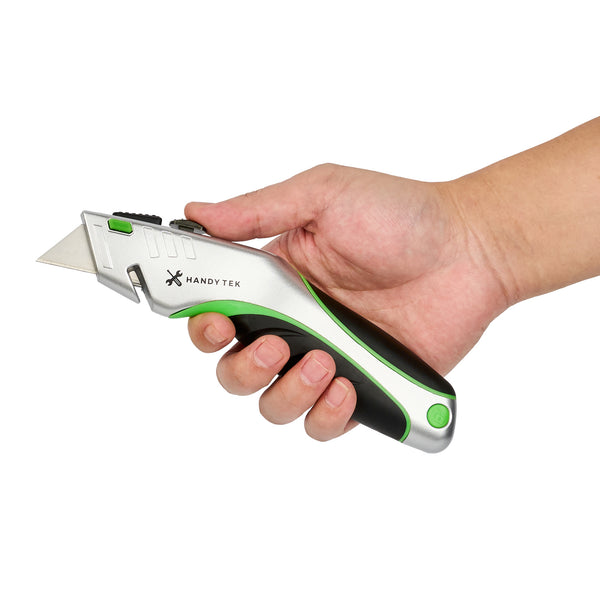 - Retractable design slides the blade safely into the handle and reduces accidental cuts