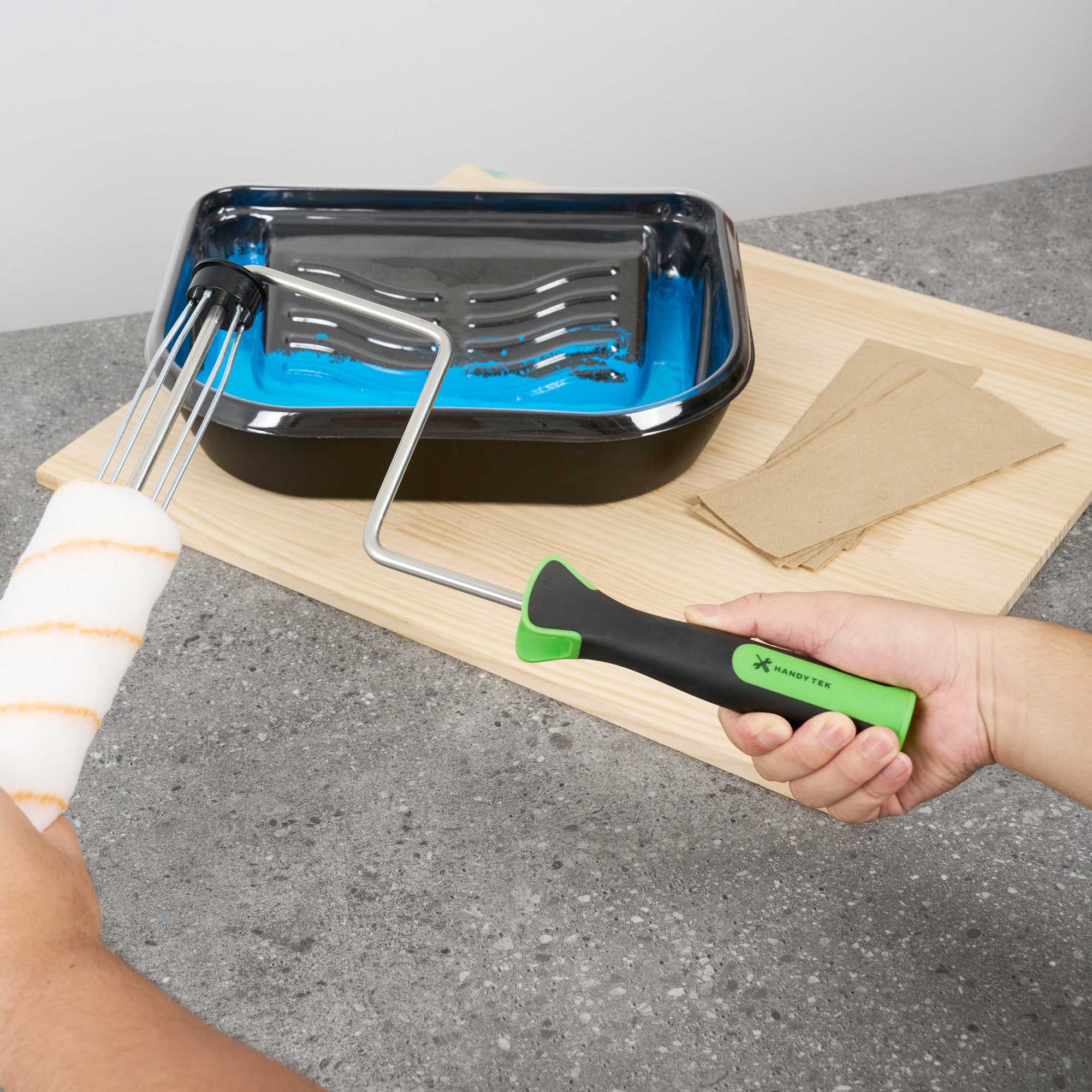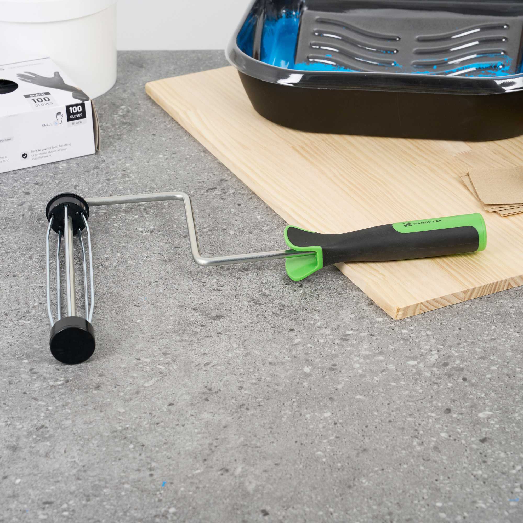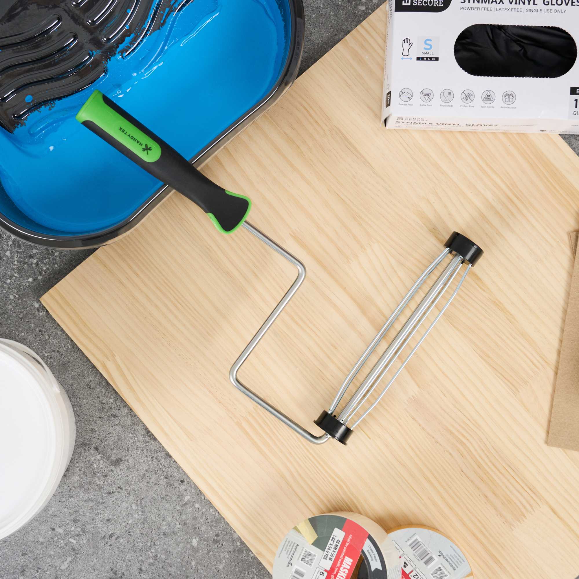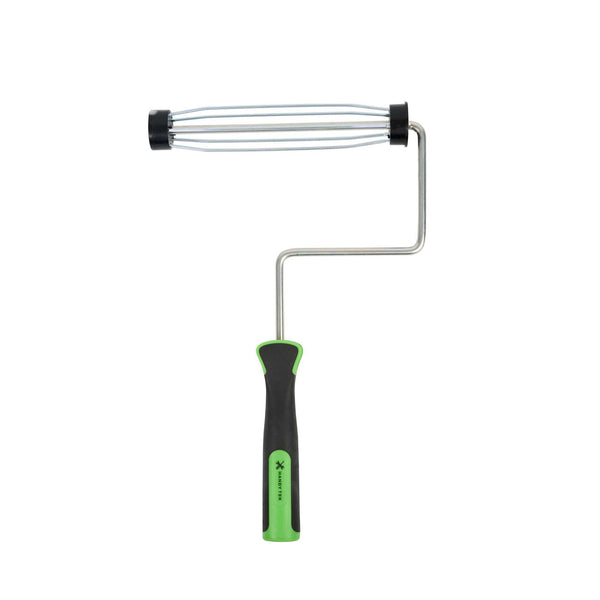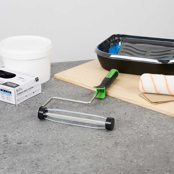 Elevate your painting projects with our Handy Tek Smooth Roller Frame, designed to provide a seamless and efficient painting experience. This roller frame features enclosed bearings, ensuring smooth rolling with minimal friction and noise, making it the ideal paint handle frame for any task. Pair this painting roller frame with Handy Tek roller covers and an extension pole for smooth coverage across walls, ceilings, and hard-to-reach areas in restaurants or cafés. Crafted with a heavy-duty 5-wire chrome-plated cage, this roller holder securely grips roller covers, resisting rust and bending even after multiple uses. The soft rubber grip handle of this coating tool frame offers exceptional comfort, allowing for better control and reduced fatigue during extended painting sessions. Measuring 15.55 inches in length by 10.04 inches in width by 1.58 inches in height, this roller frame is built for versatile use. Sold in a 6 count box.