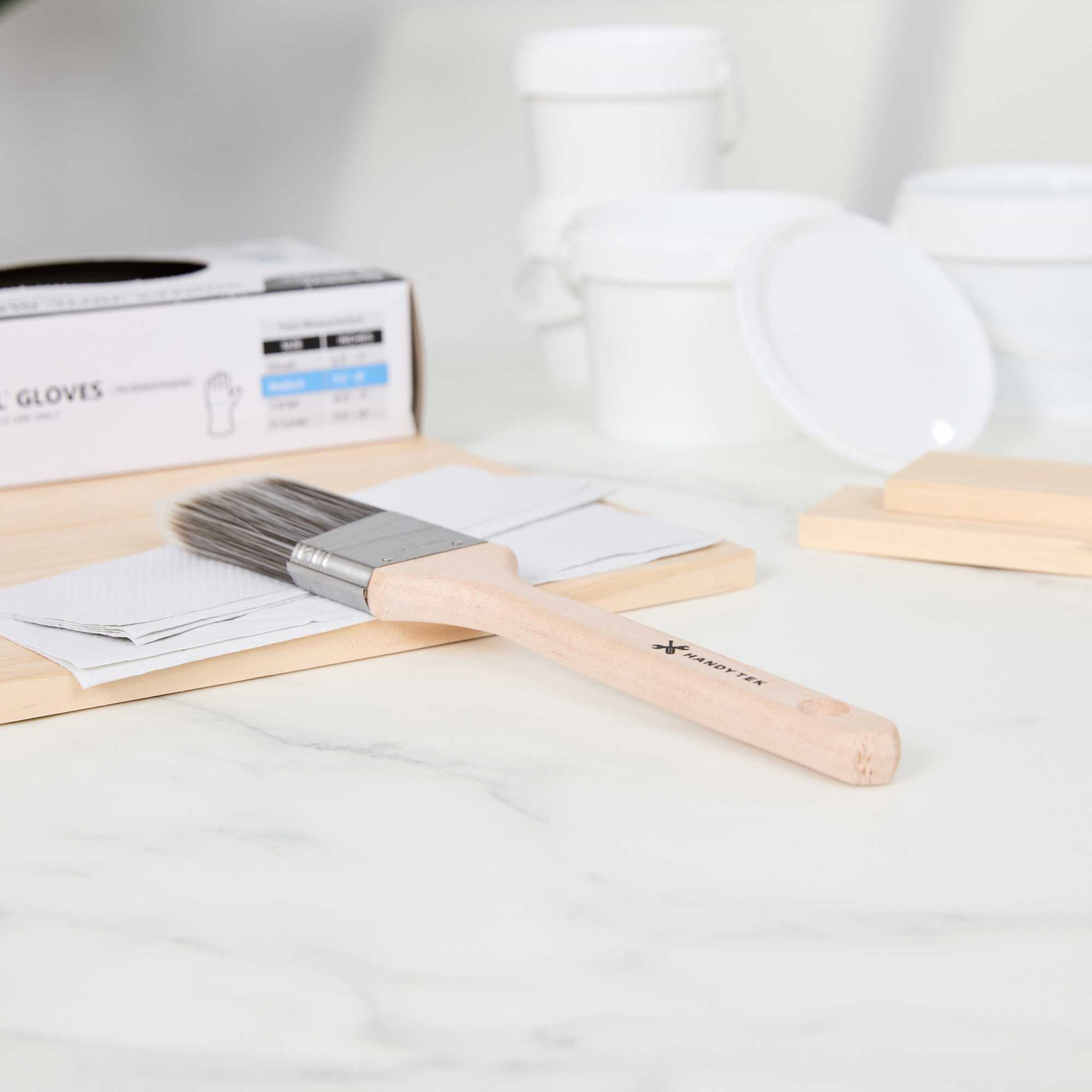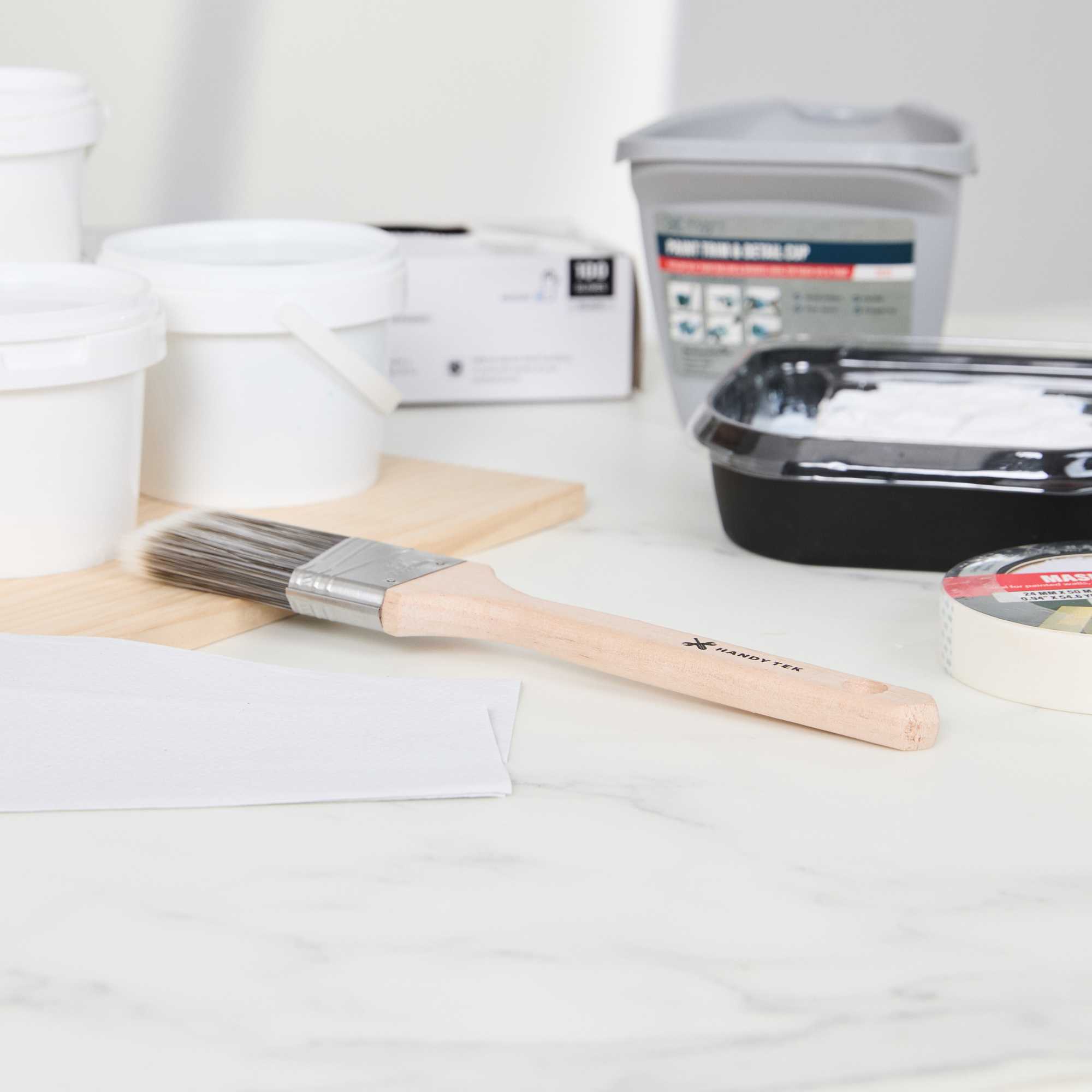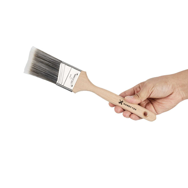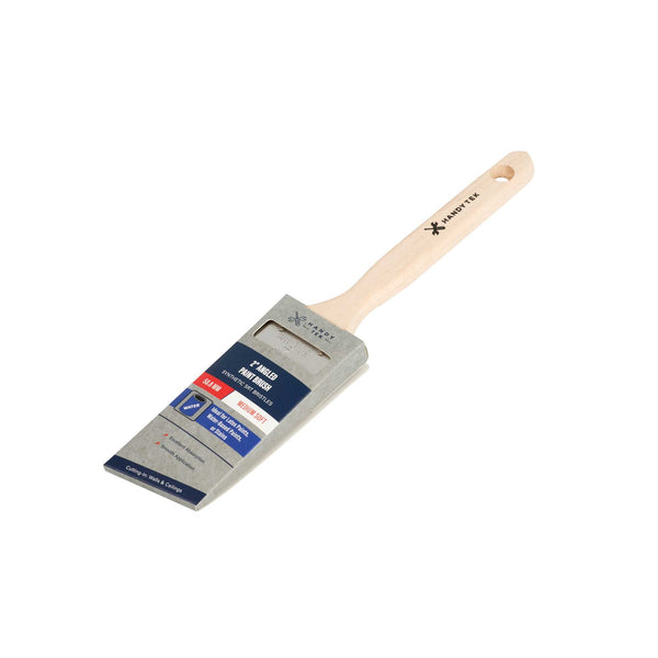 Achieve precise finishes with the Handy Tek Gray Wood Lint-Free 2 Inch Angle Paint Brush. This 2 inch angle paint brush features a high density polyester construction that ensures lint-free finishes, providing smooth coatings crucial for professional painting projects. Specifically designed as a 2 inch cutting brush, it excels with latex paint, making it ideal for kitchen remodels where clean lines are essential. The brush's high absorbing paint release minimizes waste, optimizing large painting projects by reducing excess paint usage. Constructed with a sturdy gray wood handle, this synthetic paint brush is 11.6 inches long, offering comfort and control for extended use. Optimize your painting results with this reliable tool, perfect for foodservice establishments aiming for meticulous paint applications. Sold in a 1 count box.