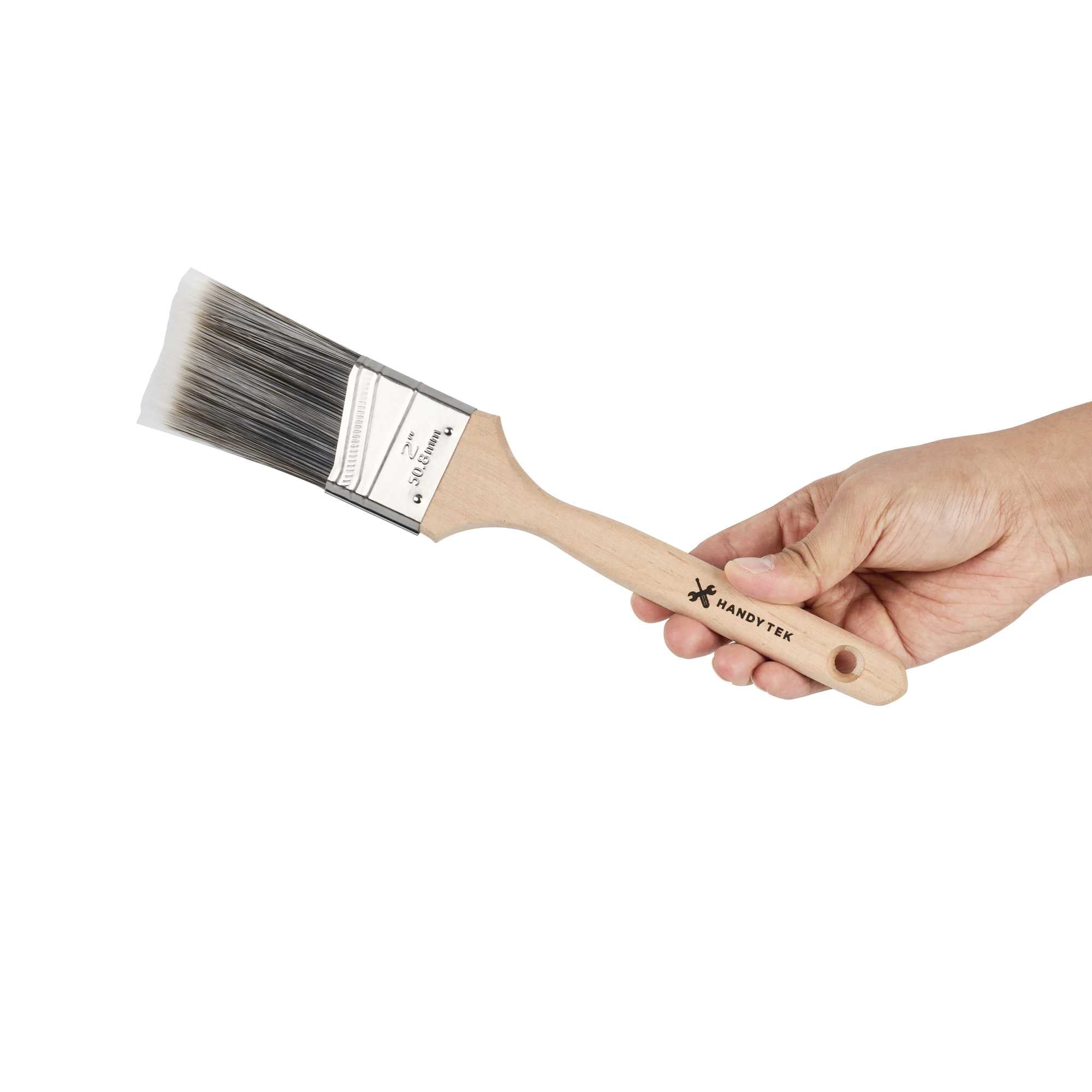 Achieve precise finishes with the Handy Tek Gray Wood Lint-Free 2 Inch Angle Paint Brush. This 2 inch angle paint brush features a high density polyester construction that ensures lint-free finishes, providing smooth coatings crucial for professional painting projects. Specifically designed as a 2 inch cutting brush, it excels with latex paint, making it ideal for kitchen remodels where clean lines are essential. The brush's high absorbing paint release minimizes waste, optimizing large painting projects by reducing excess paint usage. Constructed with a sturdy gray wood handle, this synthetic paint brush is 11.6 inches long, offering comfort and control for extended use. Optimize your painting results with this reliable tool, perfect for foodservice establishments aiming for meticulous paint applications. Sold in a 6 count box.