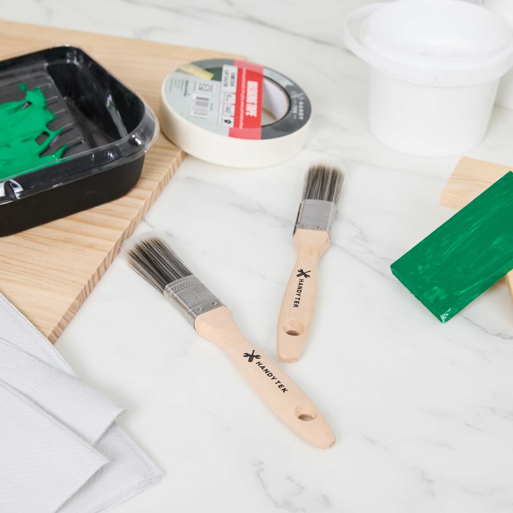Achieve flawless wall finishes with ease. The Handy Tek Lint-Free Paint Brush is designed with high density polyester that ensures a smooth, even coating, making it an ideal 1 inch paint brush for precise applications. Featuring a lint-free design, this synthetic bristle brush maintains clean, professional finishes, eliminating the frustration of stray fibers on your work. Its high absorbing paint capability significantly reduces application time, enhancing efficiency for contractors and DIY enthusiasts alike. Measuring 8.27 inches in length, this wall painting brush offers excellent control and reach for detailed work. Constructed with a sturdy wood handle, it provides a comfortable grip and long-lasting durability during extensive projects. Streamline your painting tasks with a versatile tool that delivers quality results every time. Each order includes 1 Handy Tek Lint-Free Paint Brush.