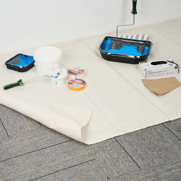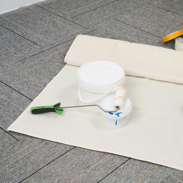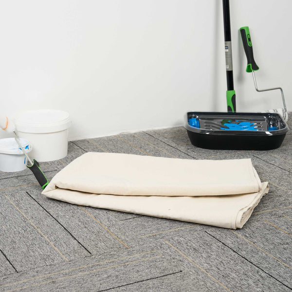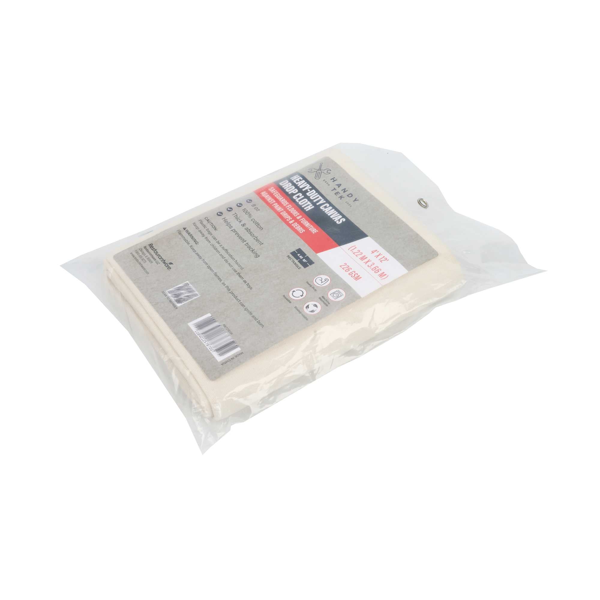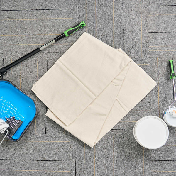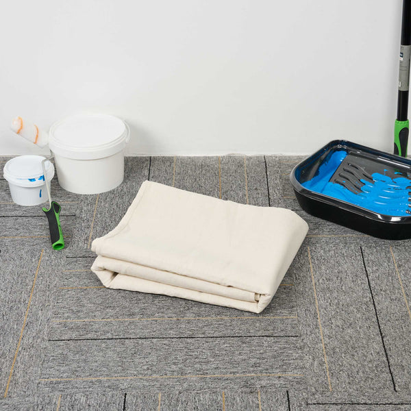 Our Handy Tek White Cotton Canvas Drop Cloth provides reliable surface protection for a variety of indoor tasks. This multi-purpose floor cover shields carpets, furniture, and flooring. Made from cotton canvas, this drop cloth features hemmed and double-stitched edges to prevent fraying for long-term use. Built with heavy weight material, this tarp sheet stays in place during use and offers extra protection against spills and dust. Ideal for painting jobs, this canvas sheet absorbs drips and dust to keep surfaces clean. As a reusable painting cloth, it can be washed and used again for multiple projects. Measuring 48.03 inches in length by 144.09 inches in width, this canvas drop cloth offers ample coverage for large areas. Sold in a 1 count box.