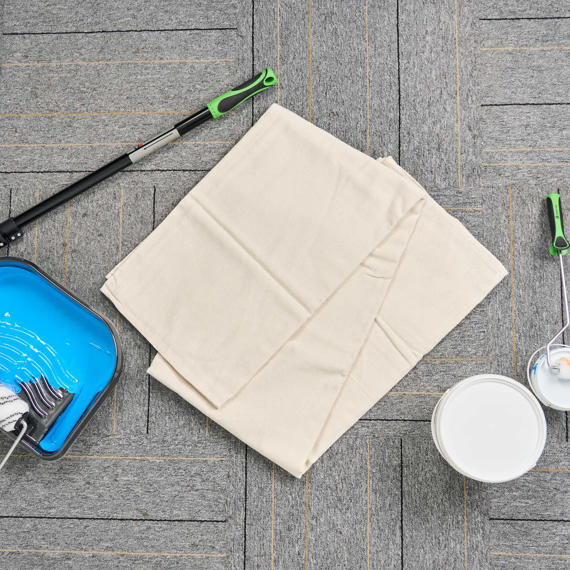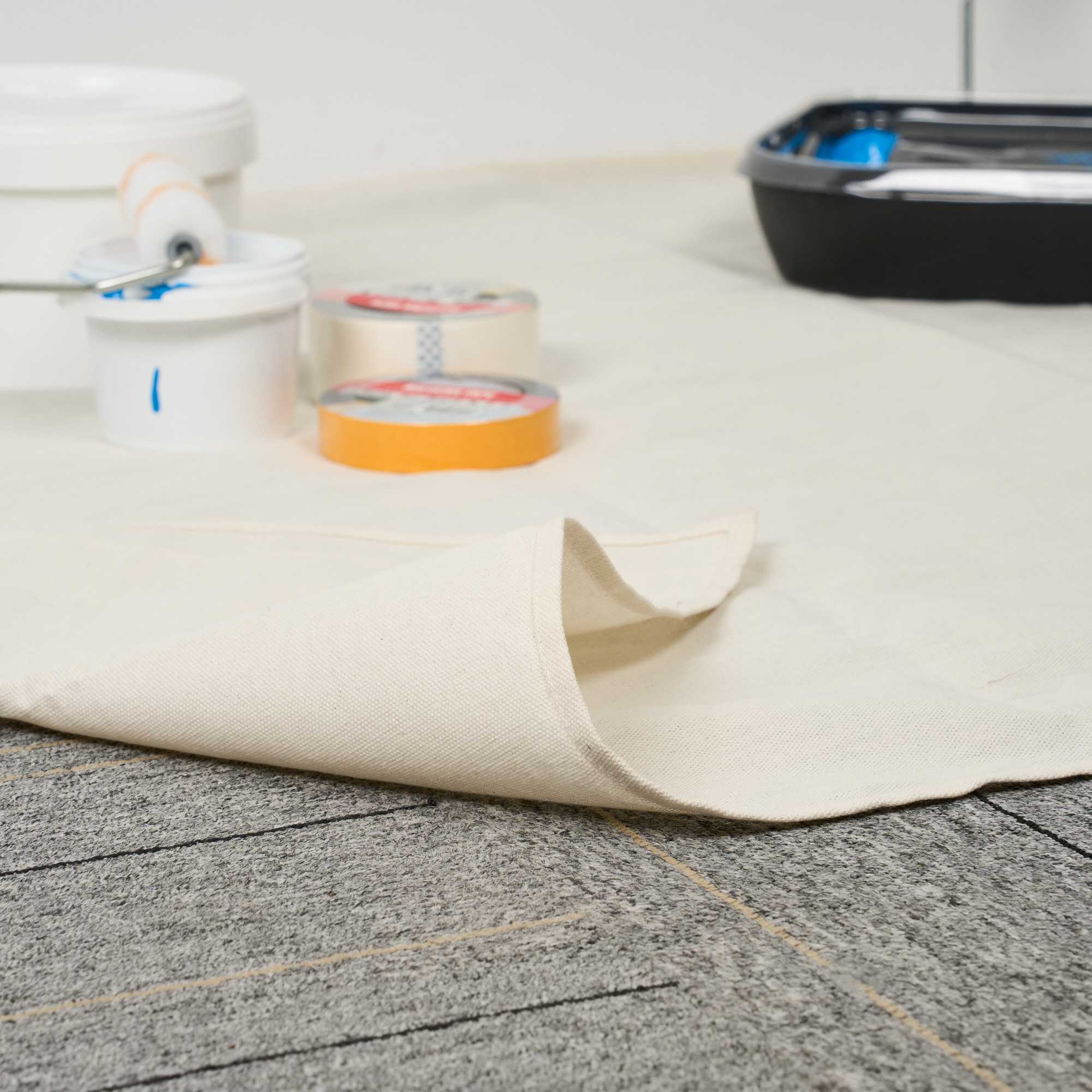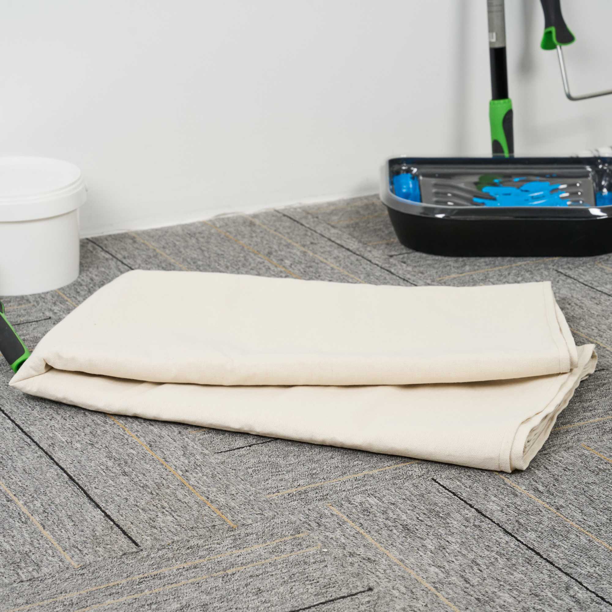 Our Handy Tek White Cotton Canvas Drop Cloth provides reliable surface protection for a variety of indoor tasks. This multi-purpose floor cover shields carpets, furniture, and flooring. Made from cotton canvas, this drop cloth features hemmed and double-stitched edges to prevent fraying for long-term use. Built with heavy weight material, this tarp sheet stays in place during use and offers extra protection against spills and dust. Ideal for painting jobs, this canvas sheet absorbs drips and dust to keep surfaces clean. As a reusable painting cloth, it can be washed and used again for multiple projects. Measuring 48.03 inches in length by 144.09 inches in width, this canvas drop cloth offers ample coverage for large areas. Sold in a 1 count box.