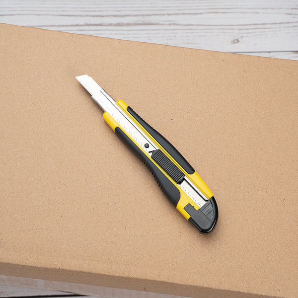 Complete a number of tasks with ease using our Handy Tek Yellow Snap Off Blade Knives. Designed with an anti-slip handle, these snap off blades provide you with a comfortable and secure grip to avoid any dangerous accidents when completing tasks. These box cutters are designed with a razor-sharp blade that is perfect for cleanly opening packages or cutting a variety of materials. The blade of these retractable knives can be adjusted to any length to match your cutting needs. To secure the blade in place while cutting, these box cutters feature a reliable locking mechanism. Made from high-quality plastic, these snap off blade knives are built to withstand frequent use at your warehouse, grocery store, or receiving area. With a bright yellow finish, these snap off blade knives are easy to identify in your toolbox. These box cutters measure 5.3 inches in length by 1.2 inches in width and have a 9-millimeter blade. Shipped in a 4 count box.