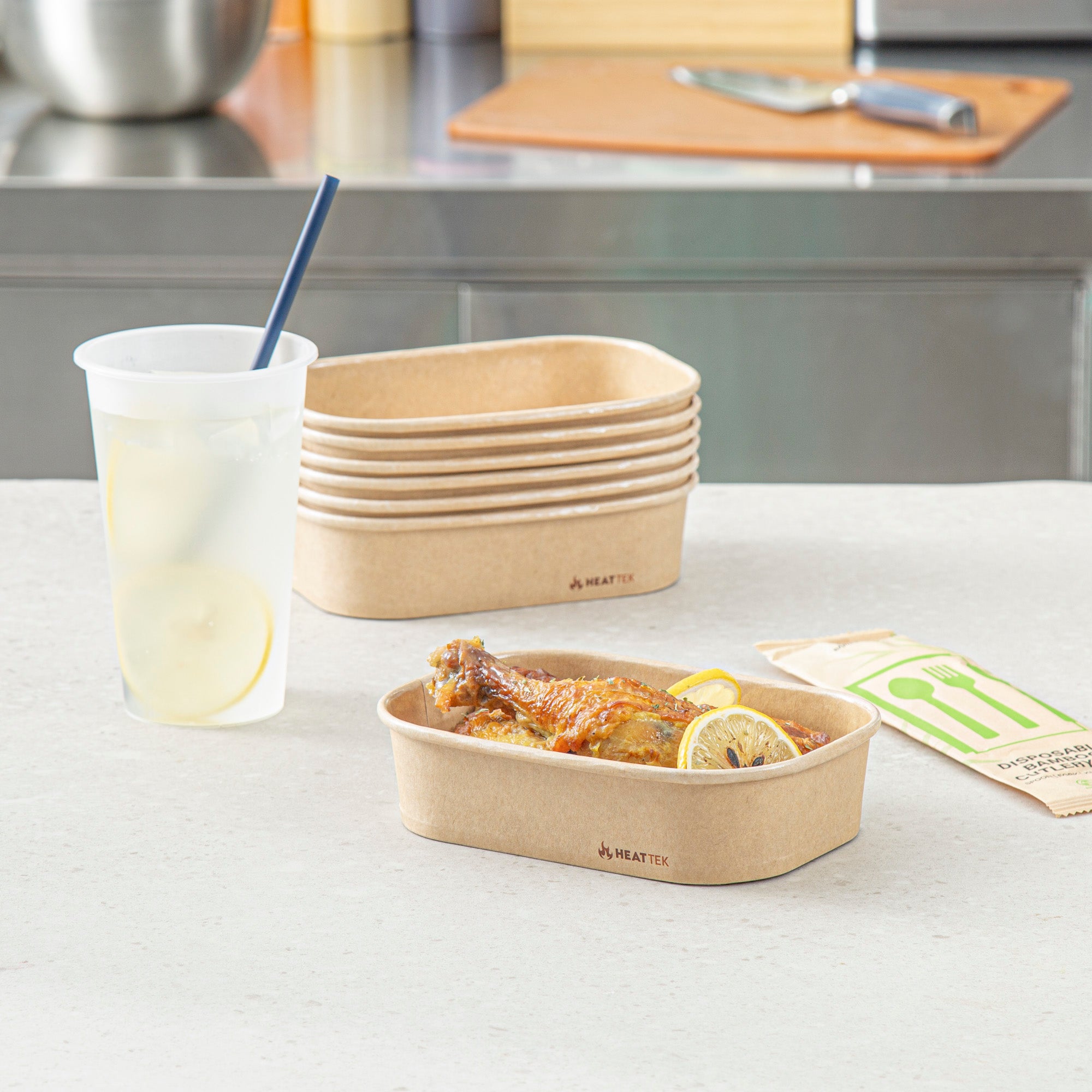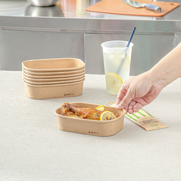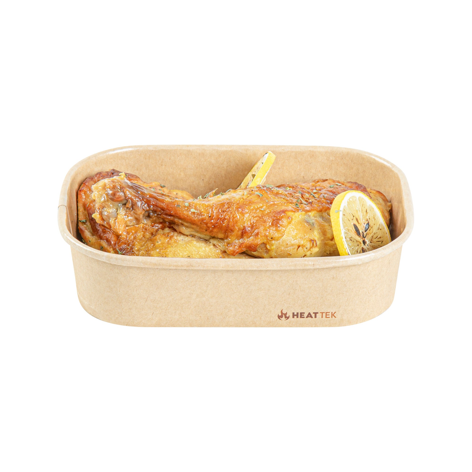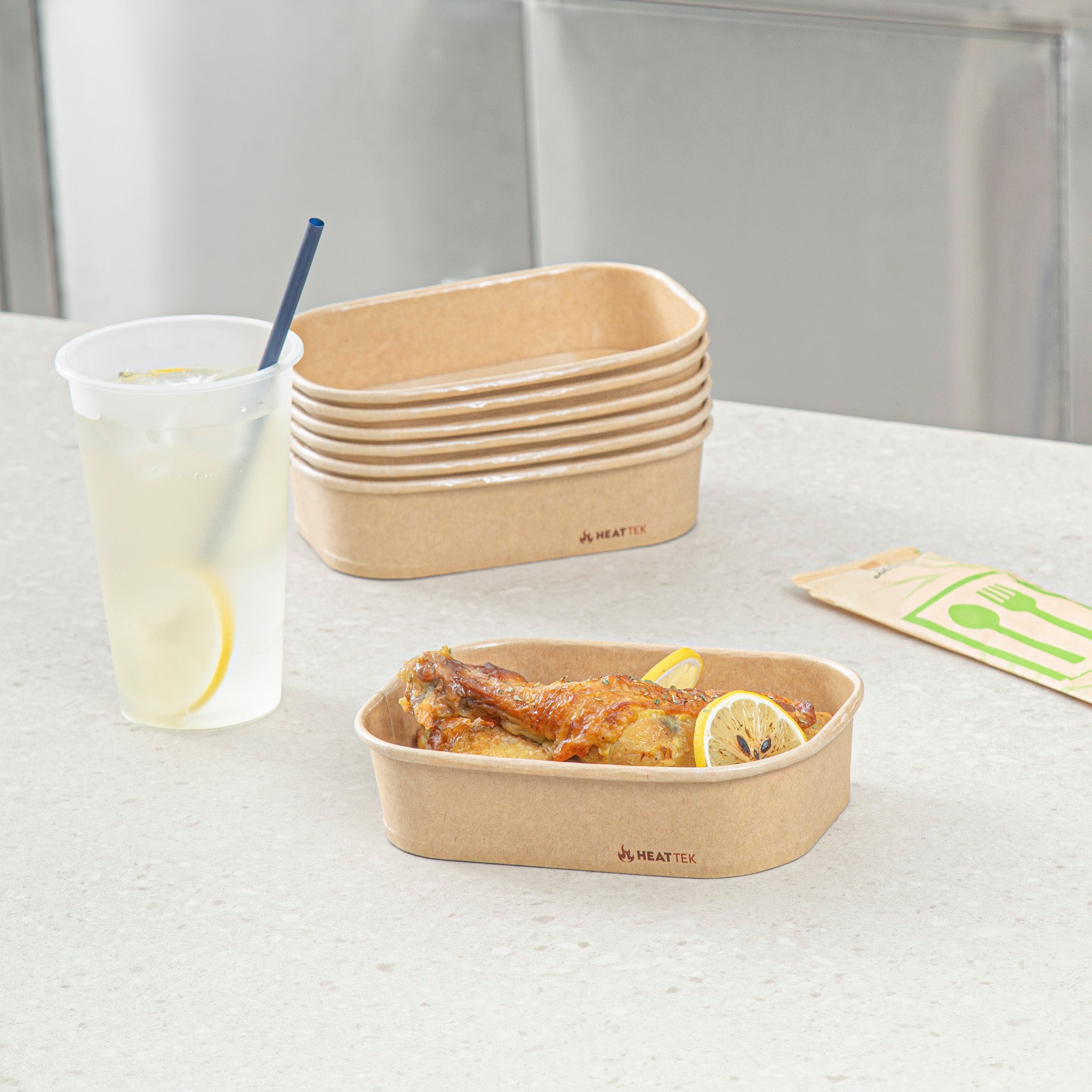 Protect your culinary creations with versatile oven-ready solutions. The Heat Tek Greaseproof Kraft Takeout Container combines a sturdy kraft paper construction with a greaseproof lining, preventing leaks from oils and sauces, making it ideal for takeout services. This kraft takeout container is designed to withstand oven temperatures up to 460 degrees Fahrenheit, allowing chefs to bake or reheat dishes directly within its durable structure, enhancing operational efficiency. Its stackable design enables space-saving storage and easy organization, benefiting kitchens that manage high-volume orders with these disposable oval food boxes. With dimensions of 6.75 inches by 4.75 inches by 1.5 inches, these containers are also microwave-safe, offering flexibility for quick meal prep. The eco-friendly kraft material not only supports sustainability initiatives but also appeals to environmentally conscious consumers seeking an oven-safe paper container. Elevate your foodservice operations with reliable, eco-conscious packaging. Each order includes 100 Heat Tek Greaseproof Kraft Takeout Containers.