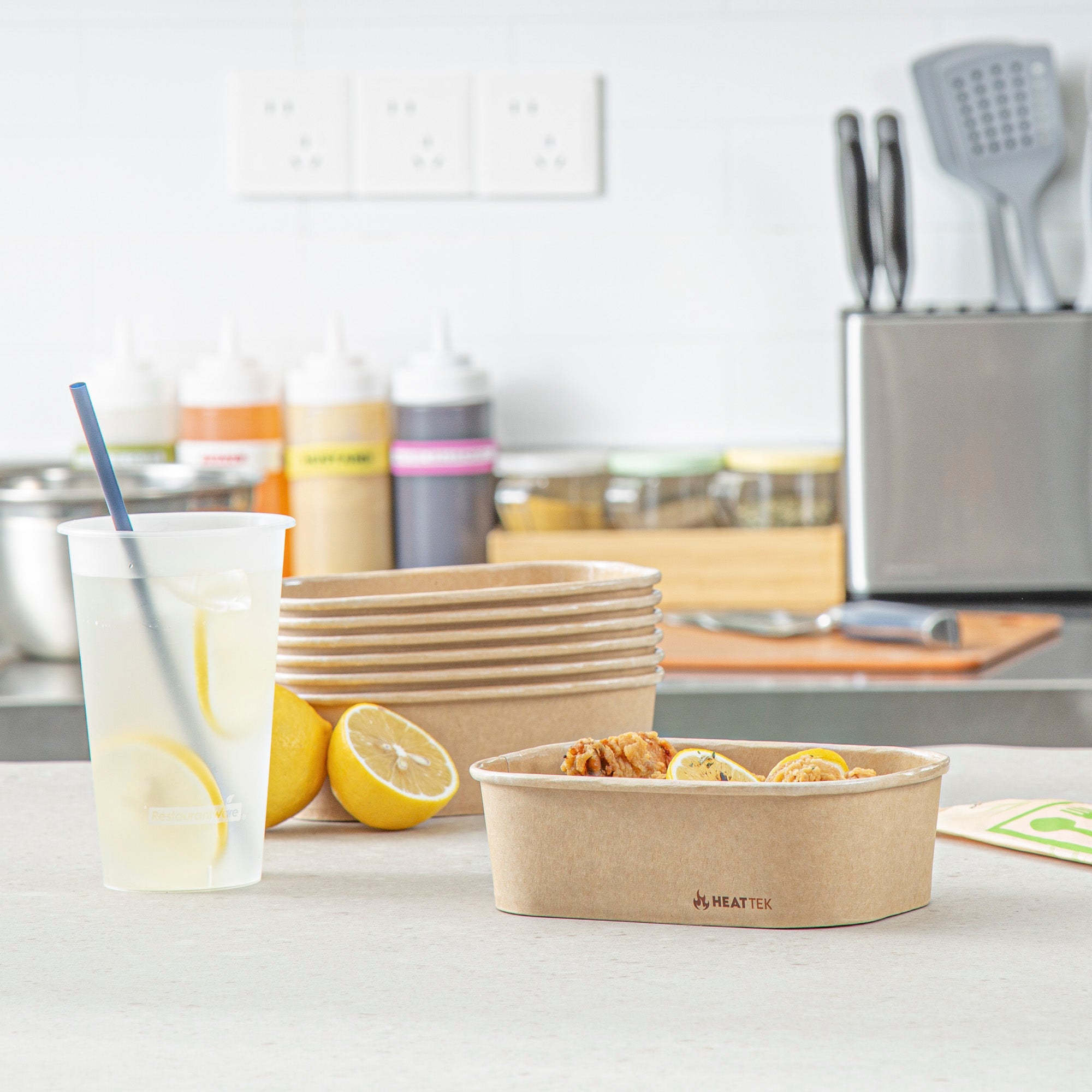 Elevate your foodservice with our Heat Tek 20-Ounce Oval Kraft Paper Serving Containers. These paper food containers feature a greaseproof lining that keeps oils and sauces from leaking through, ensuring a mess-free dining experience. Made from premium kraft paper, these serving containers are durable for oven use up to 460F, ensuring your food stays warm and delicious. Plus, they are freezable, making them versatile for any food prep situation. The convenient stackable design of these paper containers enables space-saving storage and easy organization in busy kitchens. With a capacity of 20 ounces, these kraft containers are perfect for serving generous portions of your culinary creations. Measuring 6.77 inches in length by 4.72 inches in width by 2.01 inches in height, these kraft paper containers offer ample space for a variety of dishes. Sold in a 100 count box.