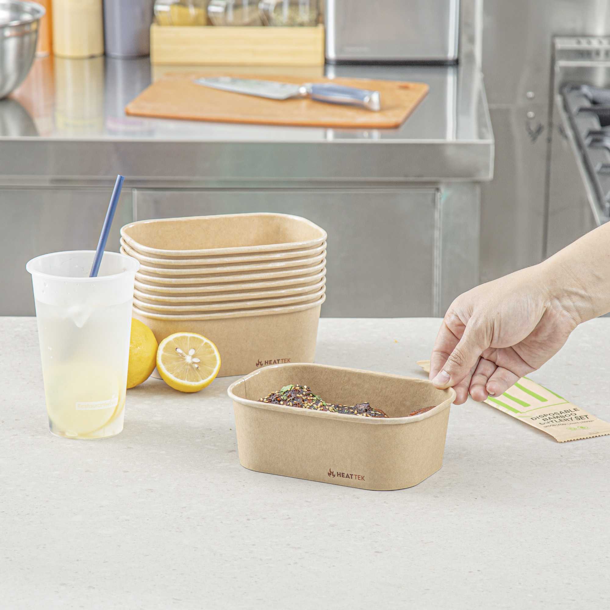 Enhance your food presentation with eco-friendly, oven-safe containers. Heat Tek Greaseproof Oval Takeout Containers feature greaseproof lining that prevents leaks from oils and sauces, ensuring your kitchen remains neat and professional. Crafted from sturdy kraft paper, these containers can withstand oven heat up to 460 degrees Fahrenheit, allowing for seamless reheating or cooking directly within the container, perfect for takeout services. With a stackable design, these greaseproof kraft containers save valuable storage space, making organization efficient in busy kitchens. Measuring 6.75 inches long, 4.75 inches wide, and 2.25 inches high, these oval meal prep containers hold up to 25 ounces, ideal for serving generous portions. The natural kraft paper not only provides a sustainable option for environmentally conscious operations but also ensures durability during transport. Choose Heat Tek for reliable and sustainable food packaging, ideal for takeout and catering. Each order includes 25 Heat Tek Greaseproof Oval Takeout Containers.