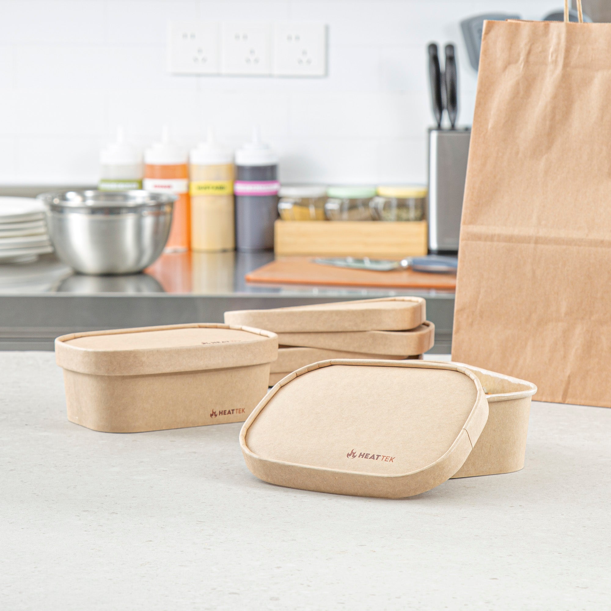 Elevate your food packaging with our Heat Tek Oval Kraft Paper Lids. Combine these kraft lids with our compatible paper containers (SKU: RWA1695K, RWA1694K, RWA1696K, and RWA1697K) for a mess-free way to transport snacks and sides. Crafted from premium kraft paper, these durable kraft lids are perfect for microwave, and freezer use, maintaining their integrity under varying temperatures. Designed with a kraft brown finish, these paper lids allow for easy labeling or writing, making meal identification a breeze. Raised edges on these paper container lids provide a firm grip for effortless opening, ensuring convenience for your staff and customers. Measuring 6.77 inches in length by 4.72 inches in width by 0.75 inches in height, these versatile lids fit a variety of container sizes. Sold in a 100 count box.