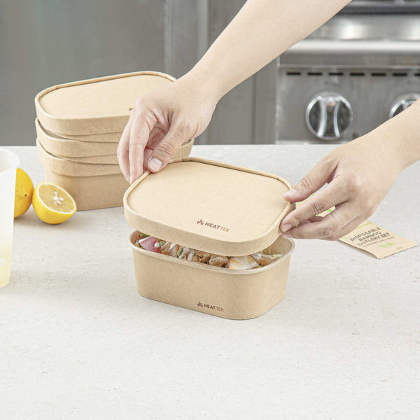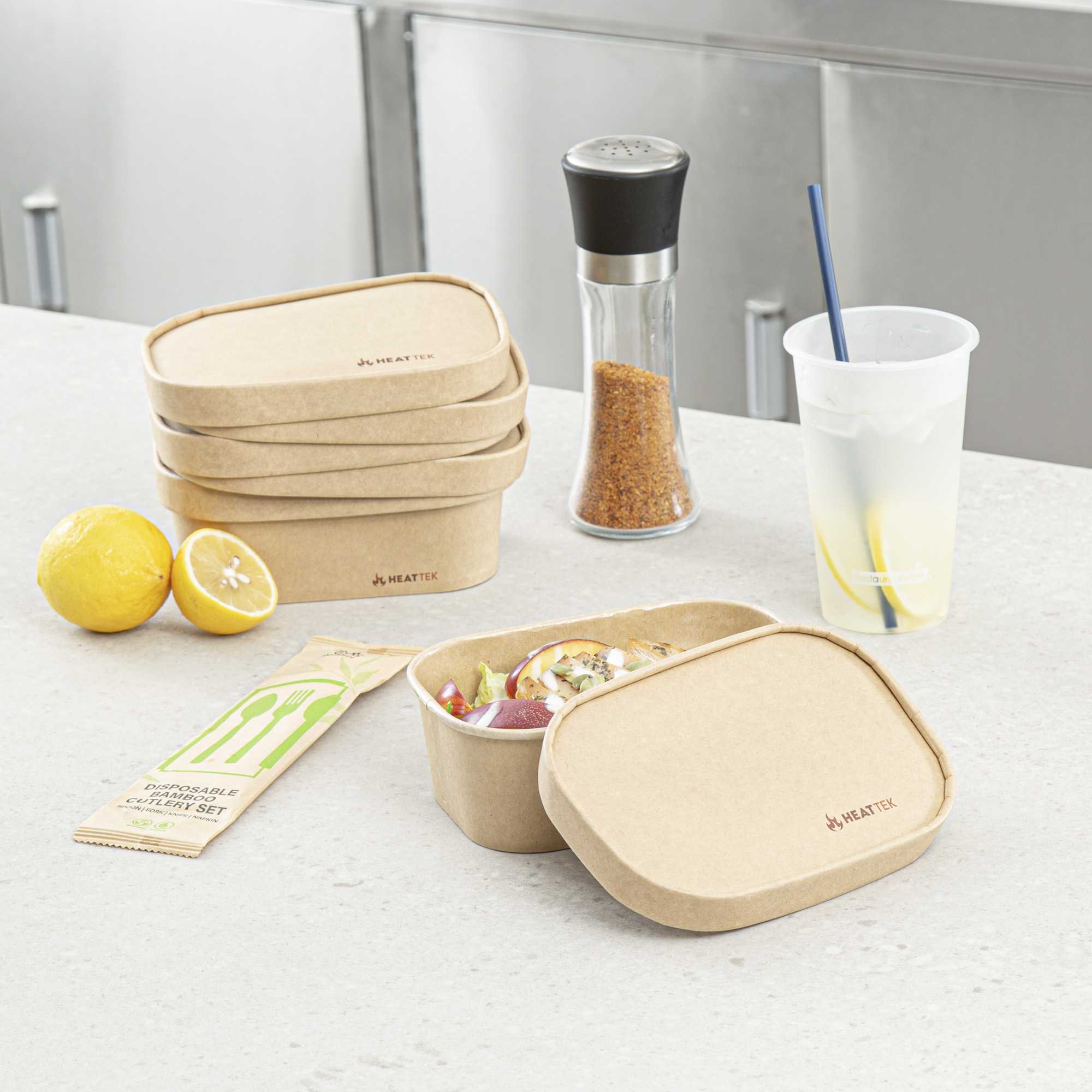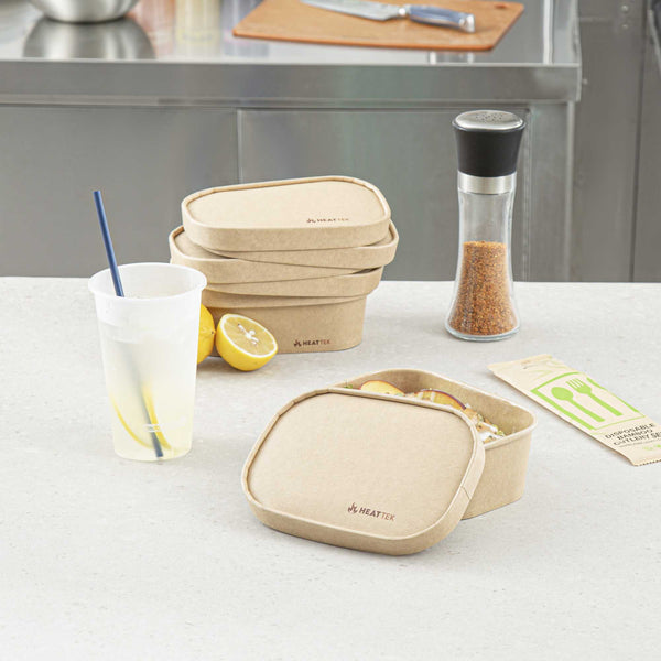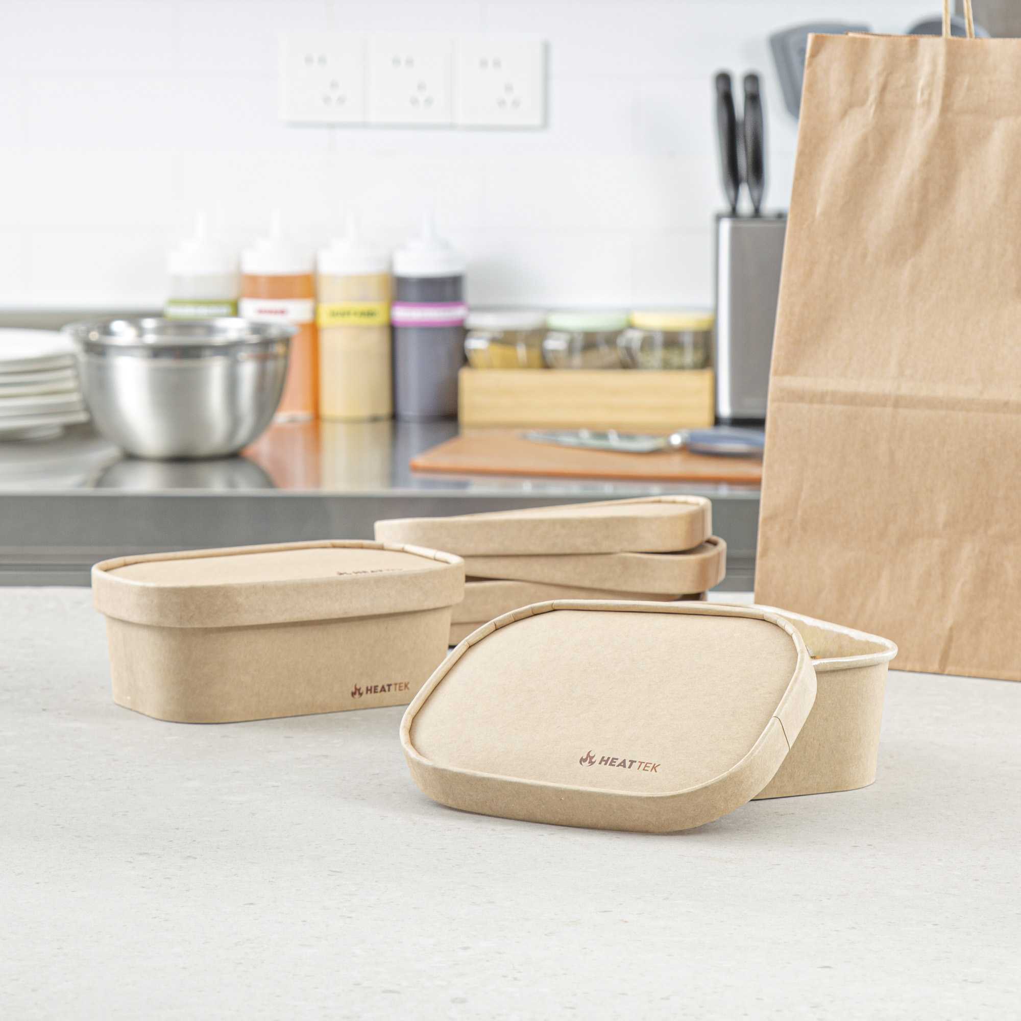 Elevate your food packaging with our Heat Tek Oval Kraft Paper Lids. Combine these kraft lids with our compatible paper containers (SKU: RWA1695K, RWA1694K, RWA1696K, and RWA1697K) for a mess-free way to transport snacks and sides. Crafted from premium kraft paper, these durable kraft lids are perfect for microwave, and freezer use, maintaining their integrity under varying temperatures. Designed with a kraft brown finish, these paper lids allow for easy labeling or writing, making meal identification a breeze. Raised edges on these paper container lids provide a firm grip for effortless opening, ensuring convenience for your staff and customers. Measuring 6.77 inches in length by 4.72 inches in width by 0.75 inches in height, these versatile lids fit a variety of container sizes. Sold in a 25 count box.