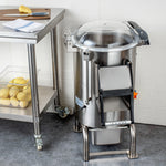 The industrial potato peeler features a compact design, fitting seamlessly into any kitchen space without compromising functionality. This saves valuable workspace, making it ideal for kitchens with limited room.