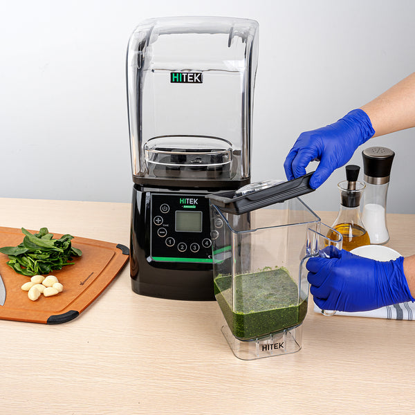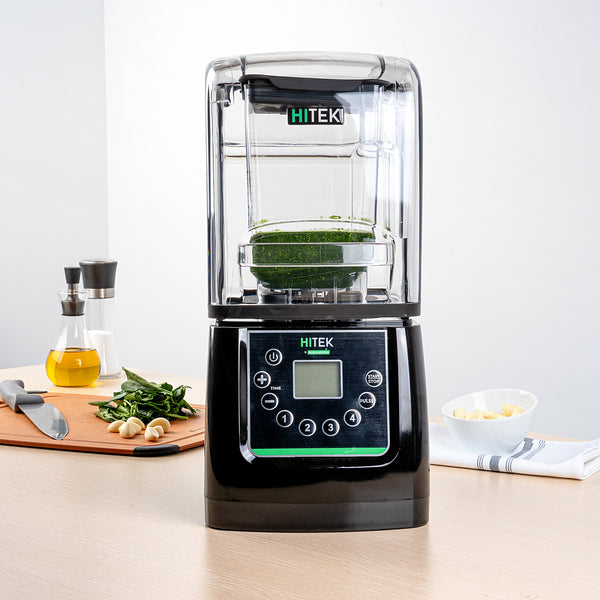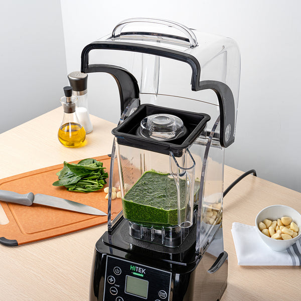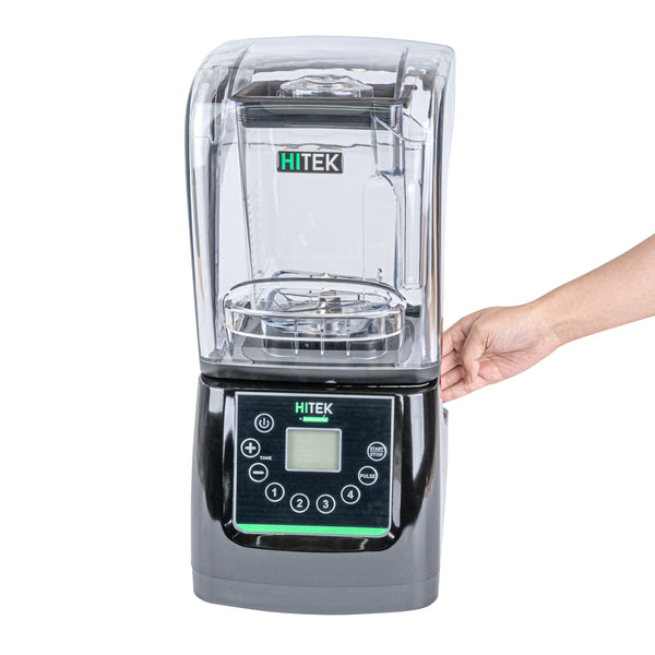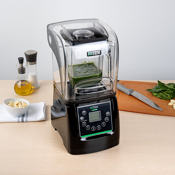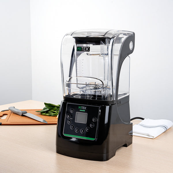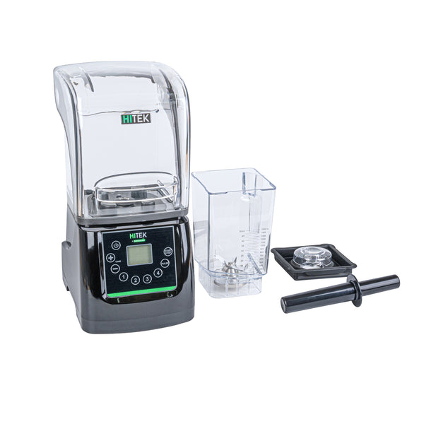 Unleash the power of our Hi Tek 3 HP Heavy Duty Commercial Blender. This professional blender boasts a 48-ounce Tritan container, providing ample space for blending large quantities of food. Encased in a sound enclosure, this variable-speed blender operates quietly, maintaining a calm and pleasant kitchen environment. The programmable touchpad of this heavy-duty blender allows for precise control, enabling you to achieve the desired texture and consistency every time. With its 9550 pure copper motor, this commercial blender can reach a whopping 26,000 RPM, ensuring every ingredient is thoroughly blended. The digital controls on this industrial blender offer a modern touch and ease of use, making your blending tasks a breeze. This electric blender includes a handy stirring rod, providing more control and precision in blending operations. Made with food-grade PC plastic, this commercial food-grade blender ensures durability, even under frequent and heavy use. Measuring 8.5 inches in length by 10.75 inches in width by 17.75 inches in height, this black blender with a clear jar optimizes space, fitting well on your kitchen counter without compromising its high capacity. Sold in a 1 count box.