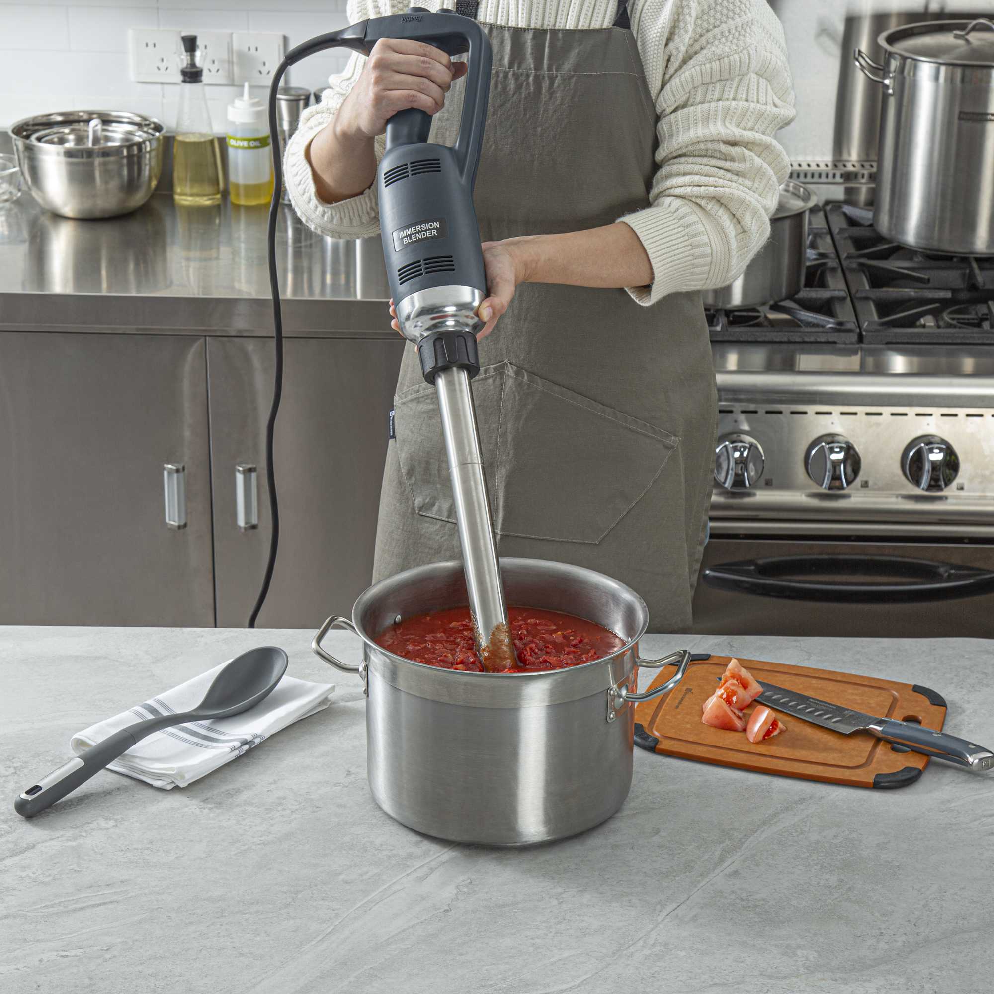 - 16" tube reaches into deep pots for large batches
