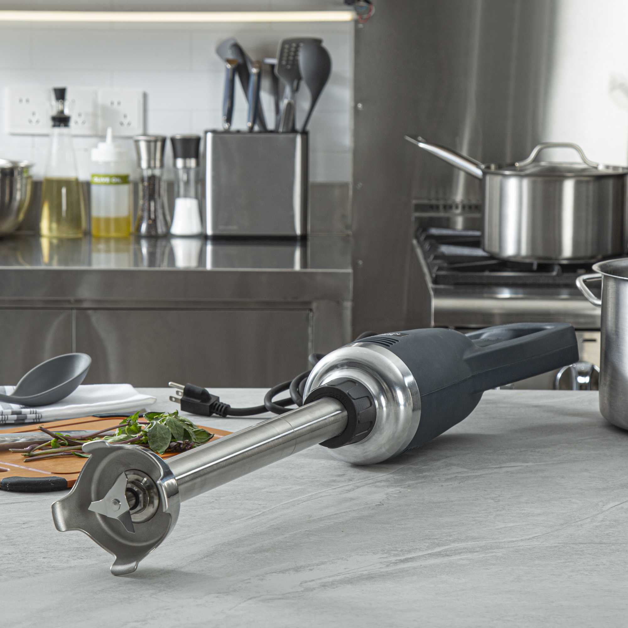 Achieve perfect consistency every time with this powerful tool. The Hi Tek Variable Speed Immersion Blender's stainless steel construction and 23.8-inch length offer durability and reach for handling large batches with ease, making it an essential immersion blender for professional kitchens. With variable speed control, this stick blender provides precise blending for sauces and soups, ensuring consistent texture and flavor. Its 16-inch tube is designed to reach deep pots, facilitating efficient large batch prep, a must-have feature for any commercial immersion blender. Elevate your kitchen’s efficiency and blending capabilities with this versatile tool. Each order includes 1 Hi Tek Variable Speed Immersion Blender.