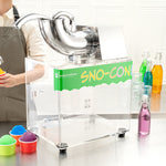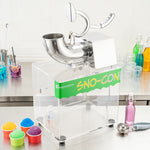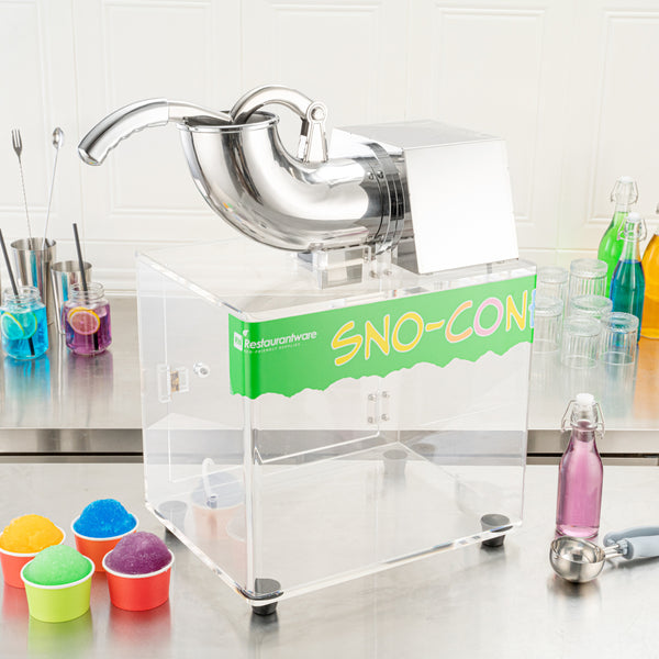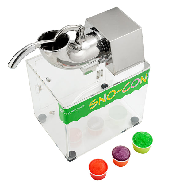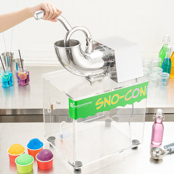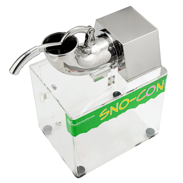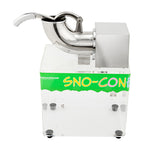 Featuring a 4.25-inch hopper, this electric snow cone maker accepts substantial quantities of ice at once. Feed large amounts of ice simultaneously to maximize your snow cone producing potential.
