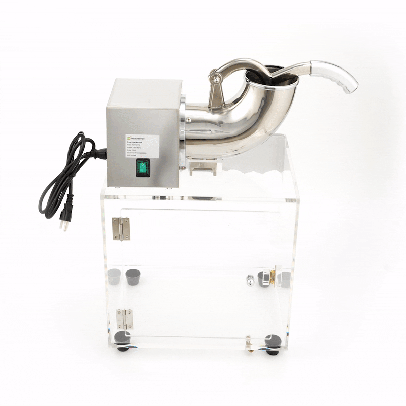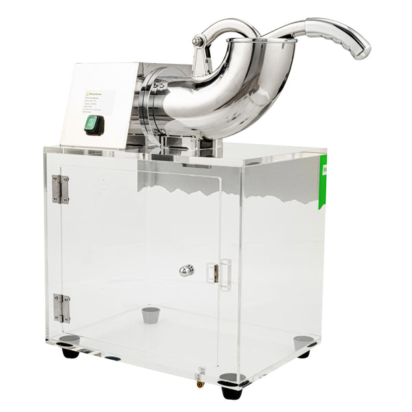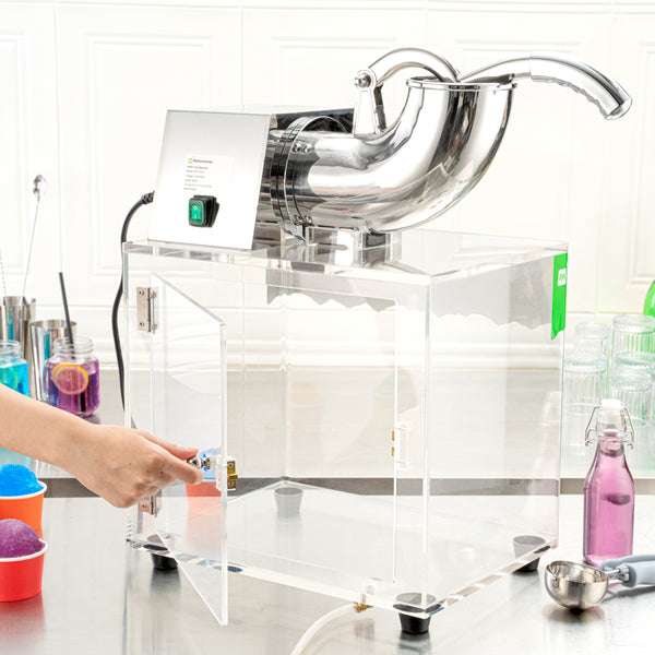 This ice shaver machine features no-slip rubber feet to keep it from sliding. The no-slip rubber feet on this snow cone machine ensure stability during operation.