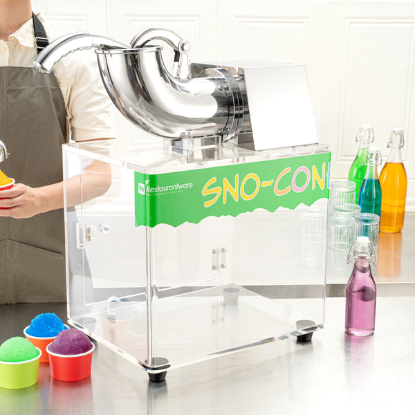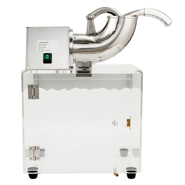 This snow cone machine has a high operating speed for maximum efficiency. Functioning at 1400RPM, this snow cone maker effortlessly shaves ice.