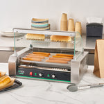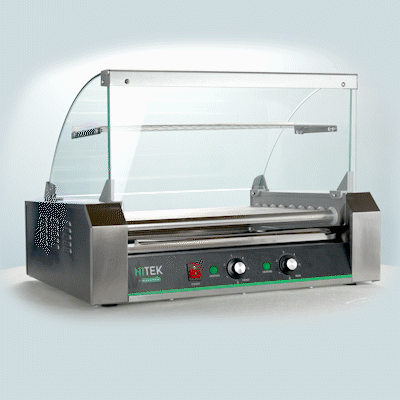 HOT DOG ROLLER GRILL WARMER - FITS 24, CURVED GLASS, SNEEZE GUARD