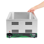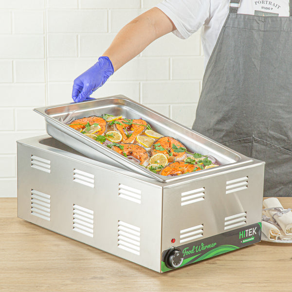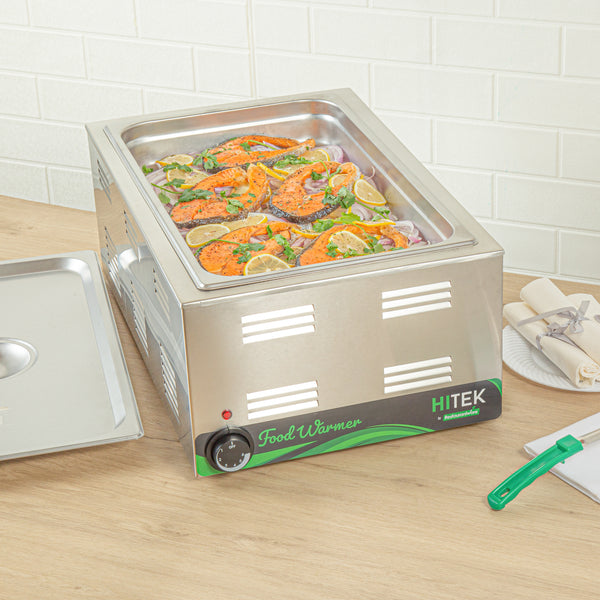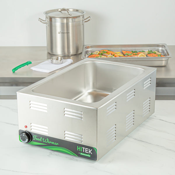 Maintain optimal serving temperatures with ease using the Hi Tek Thermostatic Electric Food Warmer. This electric food warmer features an adjustable temperature dial, providing precise control over your warming processes and ensuring that dishes remain hot and ready for service. Its operational indicator light offers quick checks of the warmer’s status, which is essential for keeping your commercial food warmer running smoothly in fast-paced environments. Constructed from durable stainless steel, this countertop food warmer is built to withstand frequent use. With a spacious dimension of 22.5 inches in length, this unit accommodates various food sizes, enhancing service efficiency. Elevate your kitchen’s efficiency with this reliable warmer designed to keep your dishes hot and delicious. Each order includes 1 Hi Tek Thermostatic Electric Food Warmer.