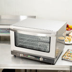 Made from stainless steel, this half size convection oven is designed for long-lasting use. Easy-to-clean material that makes cleanup and maintenance a breeze!