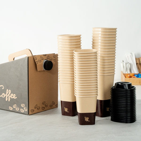 Make a statement in your establishments with our Hip 2 Be Square 12-Ounce Kraft and Brown Paper Hot / Cold Drinking Cup. To enhance your establishment's overall look, these paper drinking cups are designed with a modern square construction for a unique touch to your buffet, party, or catered event. These hot chocolate paper cups are perfect for hot or cold drinks, giving you the ultimate comfort while enjoying a hot cup of coffee or iced tea. These 12-ounce hot cups are built with a single wall construction to provide a sturdy grip when on the go. The double PE lining in these disposable hot cups prevents any potential leakage. For a spacious and organized storage room, these paper coffee cups are easily stackable. These paper cups have a "Hip 2 Be Square" text on the front bottom corner to give your customers a fun drinking experience. For a touch of sophistication to your party or catered event, these paper cups for cold drinks come in a light kraft and brown paper color. Pair these paper hot cups with our compatible Hip 2 Be Square lids to securely seal beverages and eliminate messy spills during transport (SKU: RWA1108B and RWA1109C). These paper cups for hot drinks measure 3.25 in length by 3.25 in width by 4.25 in height and are recyclable. Sold in a 25 count box. Hip 2 Be Square sippy cup lids are available and sold separately.