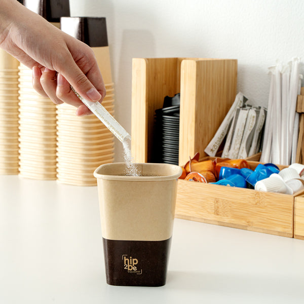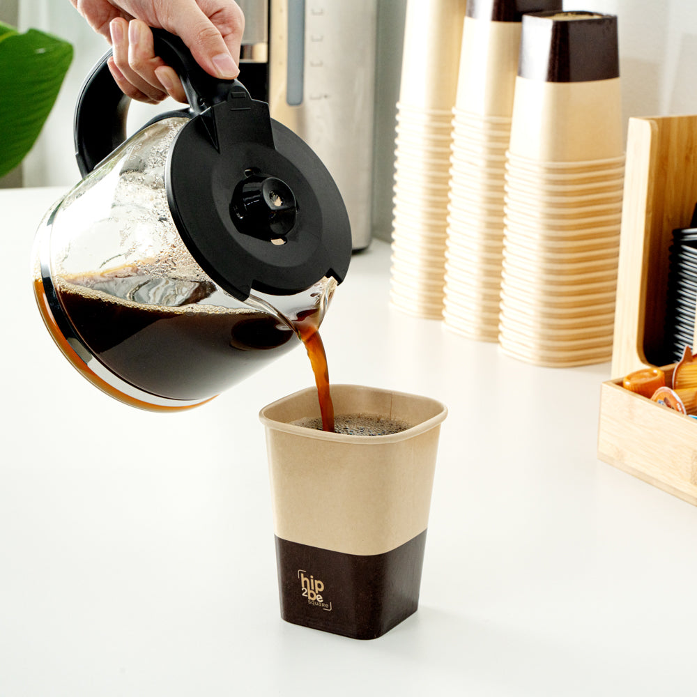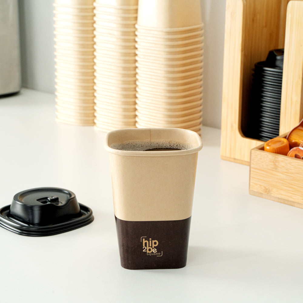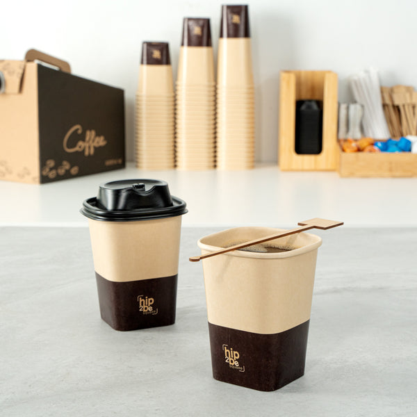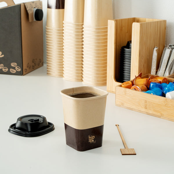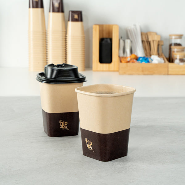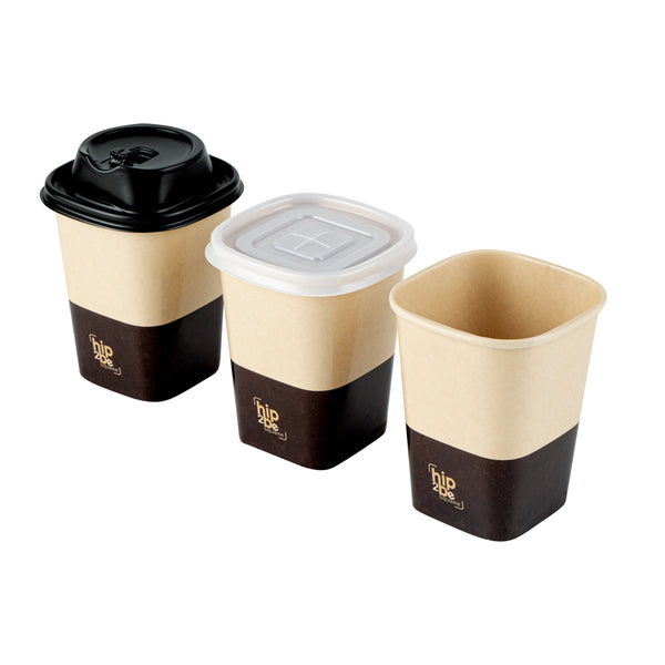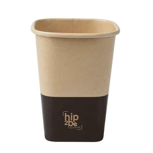 Make a statement in your establishments with our Hip 2 Be Square 12-Ounce Kraft and Brown Paper Hot / Cold Drinking Cup. To enhance your establishment's overall look, these paper drinking cups are designed with a modern square construction for a unique touch to your buffet, party, or catered event. These hot chocolate paper cups are perfect for hot or cold drinks, giving you the ultimate comfort while enjoying a hot cup of coffee or iced tea. These 12-ounce hot cups are built with a single wall construction to provide a sturdy grip when on the go. The double PE lining in these disposable hot cups prevents any potential leakage. For a spacious and organized storage room, these paper coffee cups are easily stackable. These paper cups have a "Hip 2 Be Square" text on the front bottom corner to give your customers a fun drinking experience. For a touch of sophistication to your party or catered event, these paper cups for cold drinks come in a light kraft and brown paper color. Pair these paper hot cups with our compatible Hip 2 Be Square lids to securely seal beverages and eliminate messy spills during transport (SKU: RWA1108B and RWA1109C). These paper cups for hot drinks measure 3.25 in length by 3.25 in width by 4.25 in height and are recyclable. Sold in a 500 count box. Hip 2 Be Square sippy cup lids are available and sold separately.