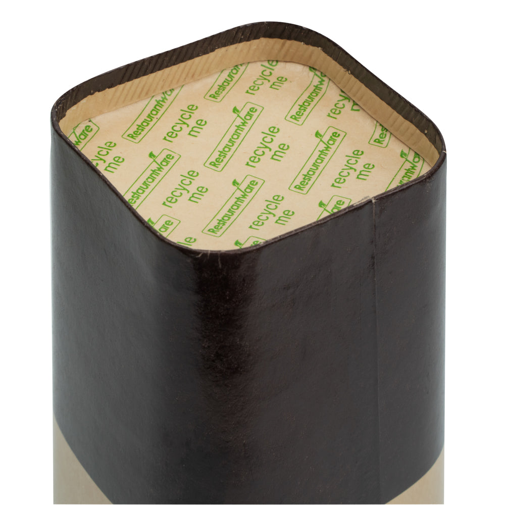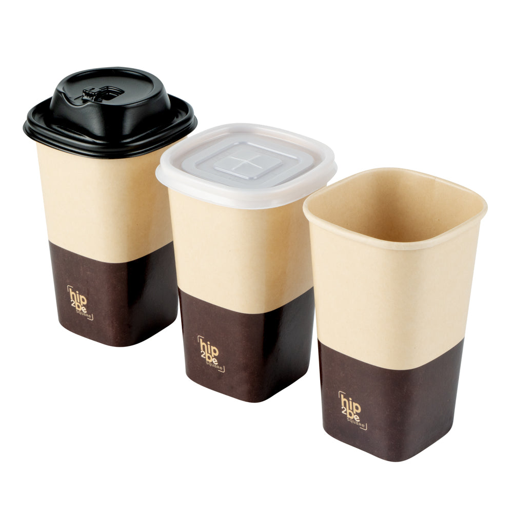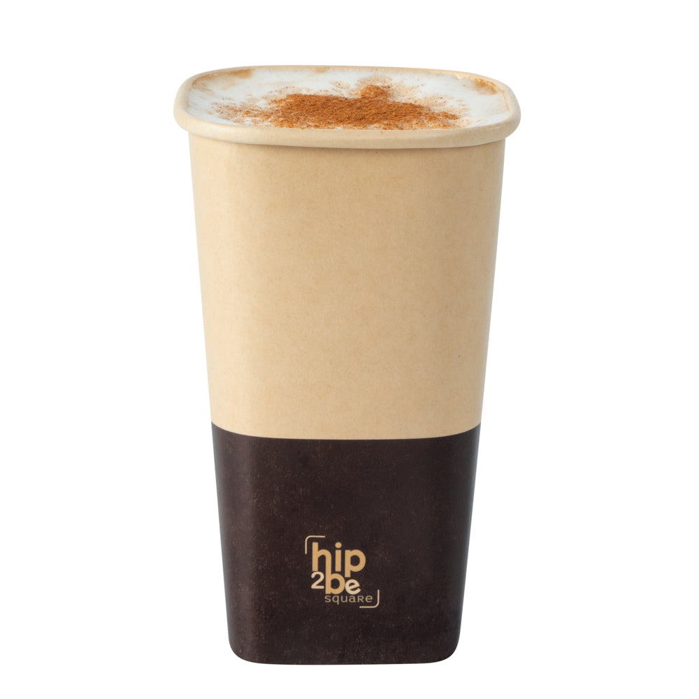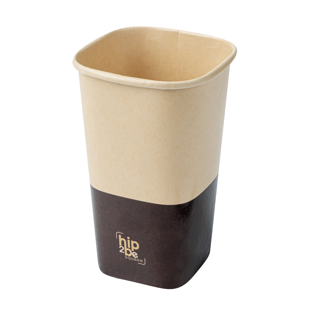 Stylishly serve hot and cold beverages with our Hip 2 Be Square 16 oz Kraft and Brown Paper Hot / Cold Drinking Cups. These paper cups feature a unique square design to enhance your drinks at your foodservice establishment. Equipped to hold both hot and cold drinks, these disposable cups are perfect for serving coffee, tea, or lemonade. These coffee cups have a single wall construction to offer a secure grip while taking drinks on the go. Made with a double PE lining, these square paper cups avoid any unwanted leakage. These disposable paper cups are conveniently stackable to save on storage space in your kitchen. With a unique kraft and brown finish, these square coffee cups fit in with the rest of your supplies. Pair these 16-ounce cups with our coordinating Hip 2 Be Square lids to keep beverages secure during transport (SKU: RWA1108B and RWA1109C). These hot and cold cups measure 3.25 inches long by 3.25 inches wide by 5.5 inches tall. Sold in a 500 count box.