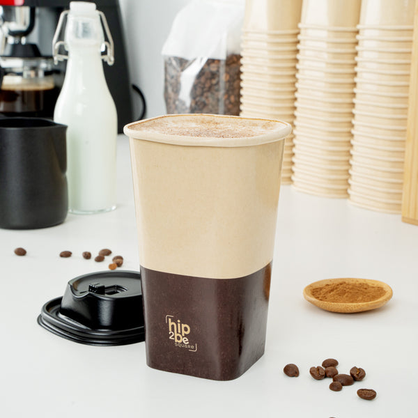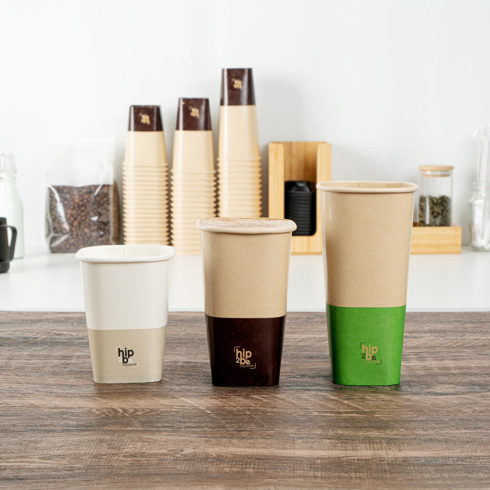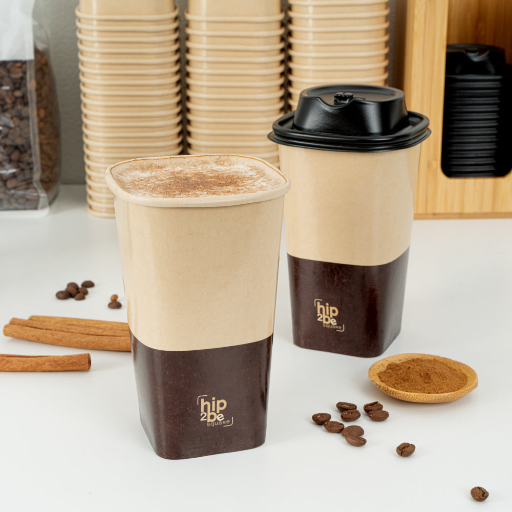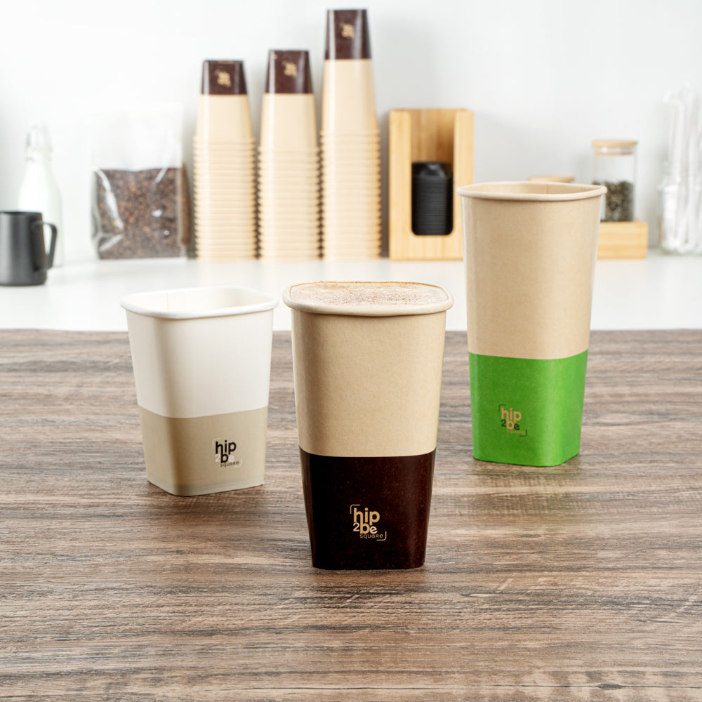 Stylishly serve hot and cold beverages with our Hip 2 Be Square 16 oz Kraft and Brown Paper Hot / Cold Drinking Cups. These paper cups feature a unique square design to enhance your drinks at your foodservice establishment. Equipped to hold both hot and cold drinks, these disposable cups are perfect for serving coffee, tea, or lemonade. These coffee cups have a single wall construction to offer a secure grip while taking drinks on the go. Made with a double PE lining, these square paper cups avoid any unwanted leakage. These disposable paper cups are conveniently stackable to save on storage space in your kitchen. With a unique kraft and brown finish, these square coffee cups fit in with the rest of your supplies. Pair these 16-ounce cups with our coordinating Hip 2 Be Square lids to keep beverages secure during transport (SKU: RWA1108B and RWA1109C). These hot and cold cups measure 3.25 inches long by 3.25 inches wide by 5.5 inches tall. Sold in a 500 count box.