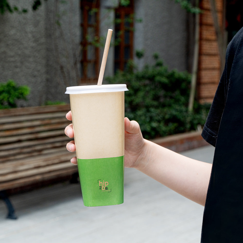 22 OZ KRAFT AND GREEN PAPER HOT / COLD DRINKING CUP - SINGLE WALL