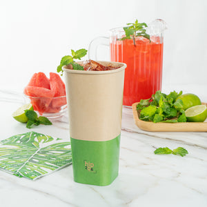 22 OZ KRAFT AND GREEN PAPER HOT / COLD DRINKING CUP - SINGLE WALL