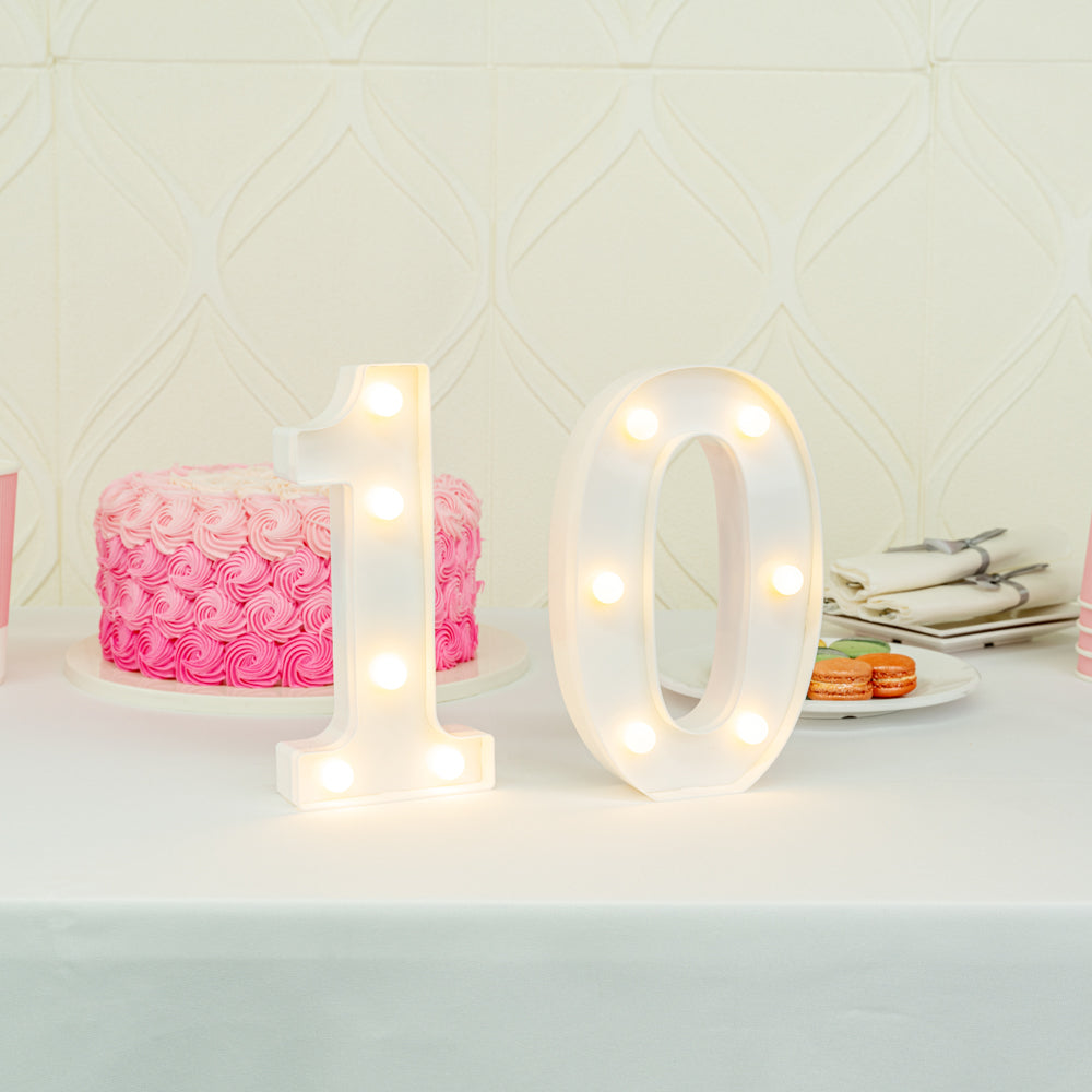 Our collection of light-up letters and numbers contains the whole alphabet and numbers 0 through 9. Combine these letters and numbers to spell words and display ages or anniversary dates.