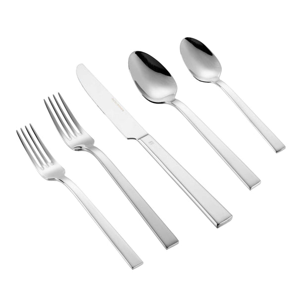 - 10-piece cutlery set includes 2 dinner spoons and forks, 2 dessert spoons and forks, and 1 table knife