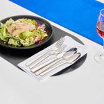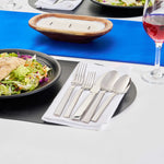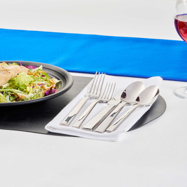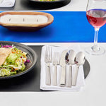 Indulge in sophistication and practicality with our Imperial 18/10 Stainless Steel Flatware Sets. Crafted using premium-grade stainless steel, these flatware sets ensure prolonged usage and are well-suited for routine meals or special gatherings. Constructed to provide service for 2, these cutlery sets have an ergonomic handle designed for a comfortable grip. Plus, these dishwashable cutlery sets reduce your post-event clean-up process. The robust stainless steel composition of these silverware sets keeps corrosion and dullness at bay. These cutlery sets encompass two 9.25-inch table knives, two 7.75-inch dinner forks, two 7.75-inch tablespoons, two 7-inch dessert forks, and two 7-inch dessert spoons per order. Sold in a 10 count box.