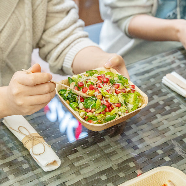 Our collection of palm leaf dinnerware is ideal for hot and cold foods to indulge in any kind of warm or chilled dish. Easily eat hot soup or frozen acai bowls!