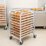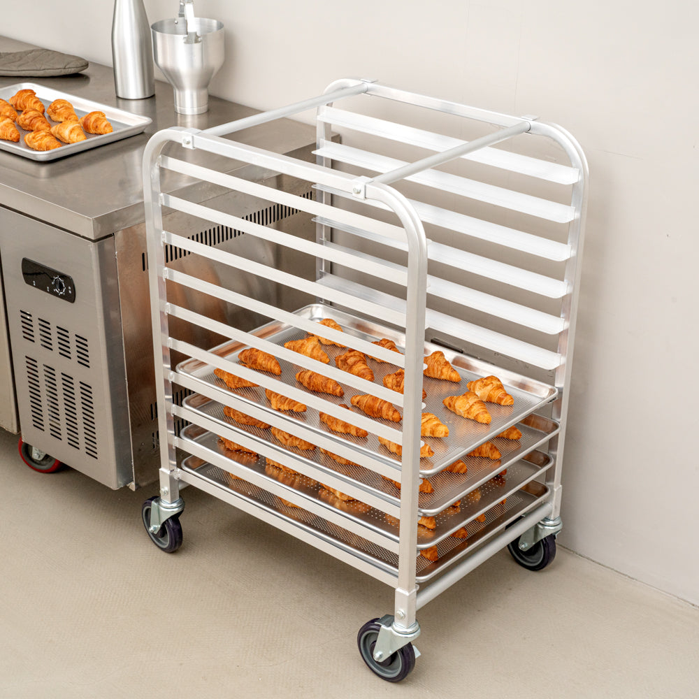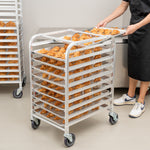 Equipped with four casters, these bun pan racks can be wheeled around to facilitate transporting food or supplies across the kitchen. Plus, the casters include two brakes for additional reliability.