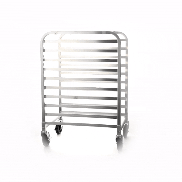 For storing various baking sheets together, this bun rack can hold 10, 12, 18, or 20 pans at once. Have ample space for all of your supplies with 5-inch or 3-inch shelf spacing!