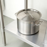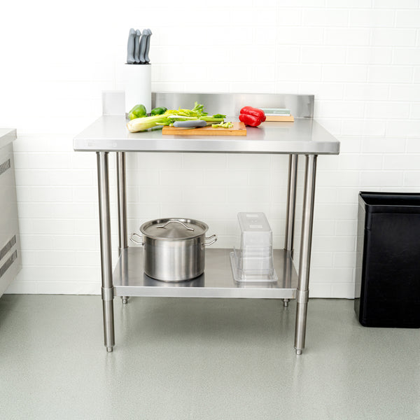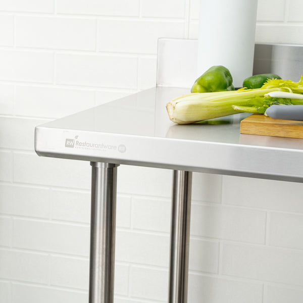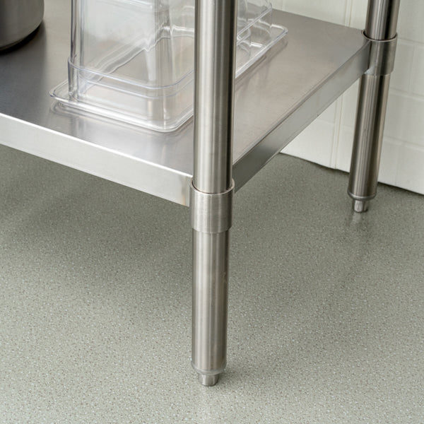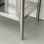 The top shelf of these work tables holds hundreds of pounds of heavy equipment such as espresso machines or mixers. Most of our metal tables have an undershelf for extra storage for bowls, bins, or ingredients.