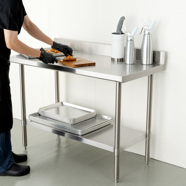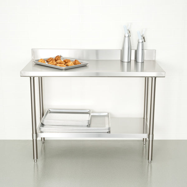 These food prep tables have a smooth surface that can be easily wiped after rolling dough or mixing batter. Not to mention, a few of our tables are equipped with a backsplash to keep ingredients from falling to the floor.