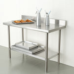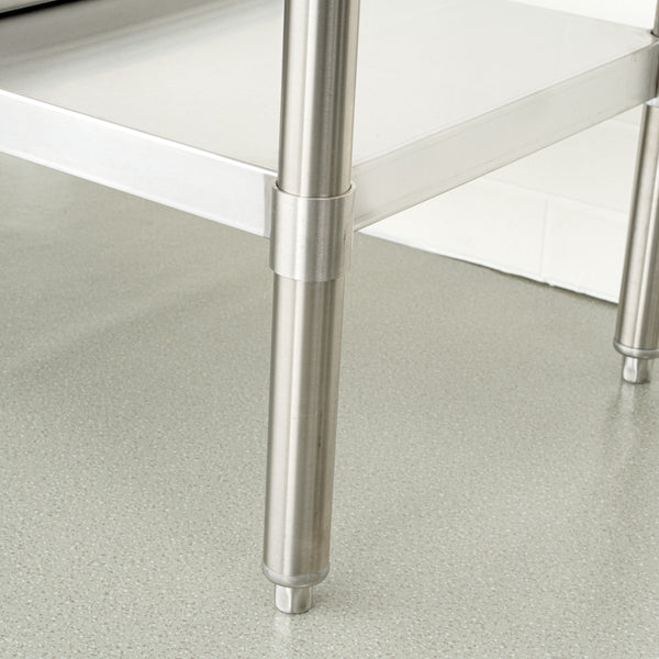 The top shelf of these work tables holds hundreds of pounds of heavy equipment such as espresso machines or mixers. Most of our metal tables have an undershelf for extra storage for bowls, bins, or ingredients.