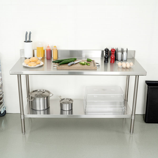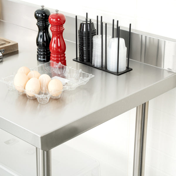 These food prep tables have a smooth surface that can be easily wiped after rolling dough or mixing batter. Not to mention, a few of our tables are equipped with a backsplash to keep ingredients from falling to the floor.