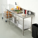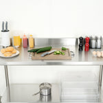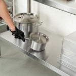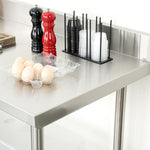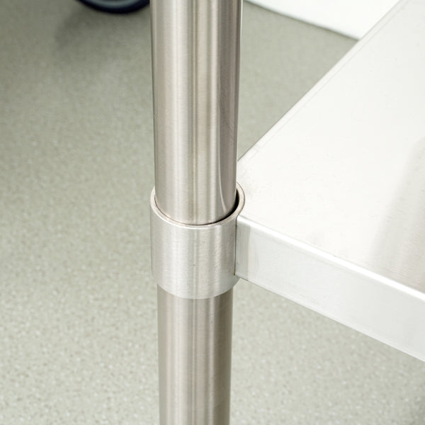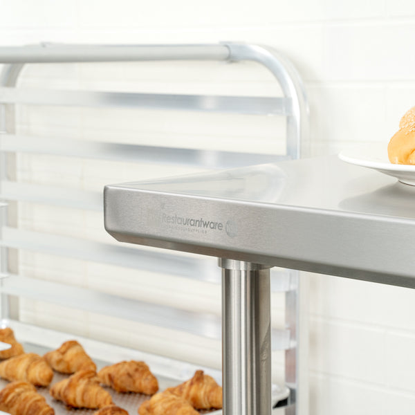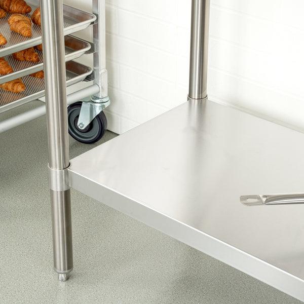 The top shelf of these work tables holds hundreds of pounds of heavy equipment such as espresso machines or mixers. Most of our metal tables have an undershelf for extra storage for bowls, bins, or ingredients.