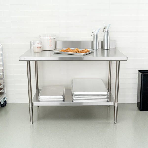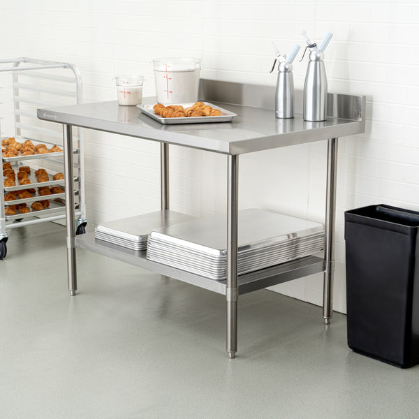 These food prep tables have a smooth surface that can be easily wiped after rolling dough or mixing batter. Not to mention, a few of our tables are equipped with a backsplash to keep ingredients from falling to the floor.
