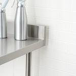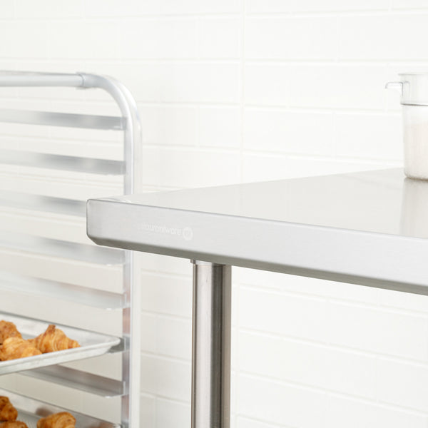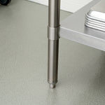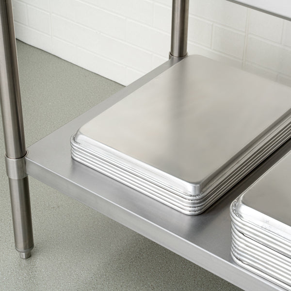 The top shelf of these work tables holds hundreds of pounds of heavy equipment such as espresso machines or mixers. Most of our metal tables have an undershelf for extra storage for bowls, bins, or ingredients.