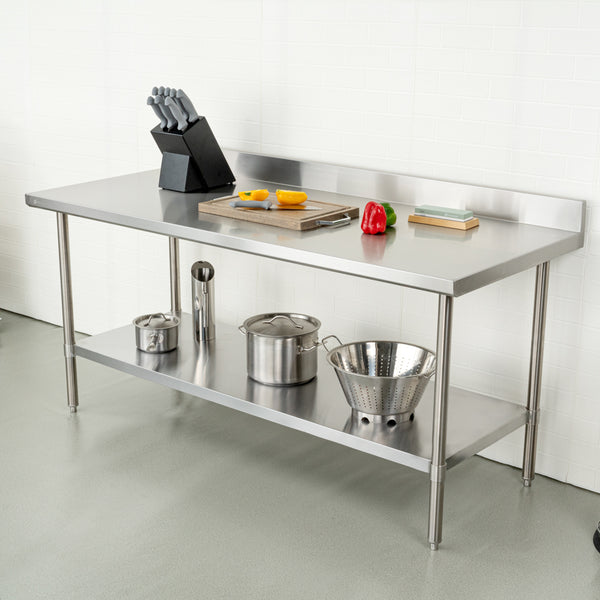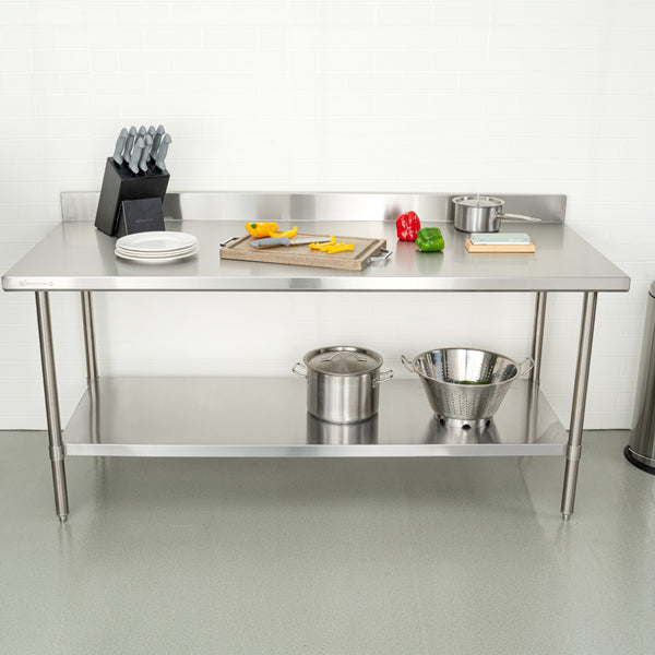 These food prep tables have a smooth surface that can be easily wiped after rolling dough or mixing batter. Not to mention, a few of our tables are equipped with a backsplash to keep ingredients from falling to the floor.