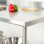 Each of our work tables are constructed with 16- or 18-gauge thickness for long-lasting use. These food prep tables are designed to endure constant use, making them ideal for busy kitchens or your catering business.